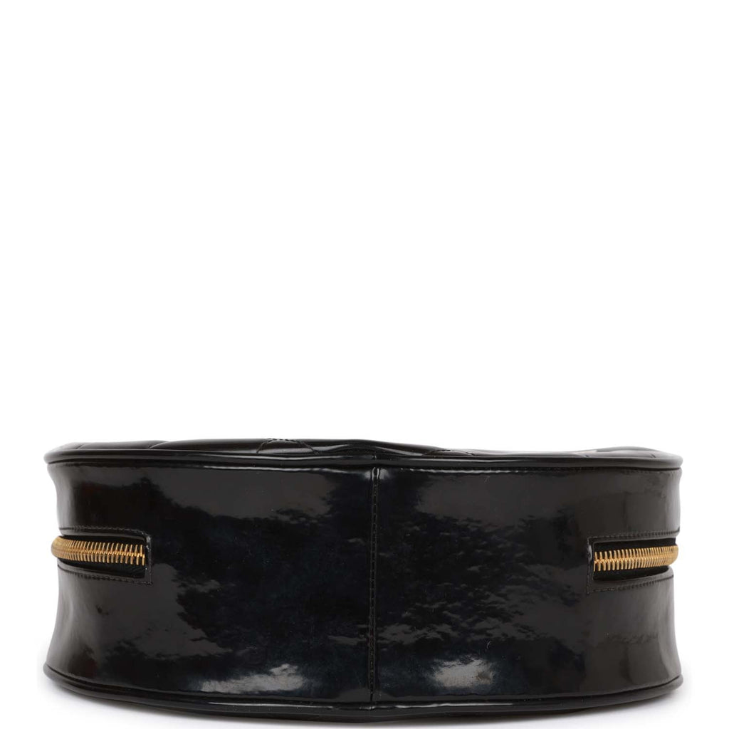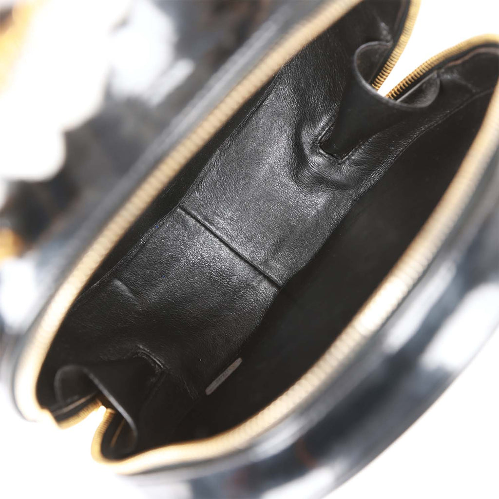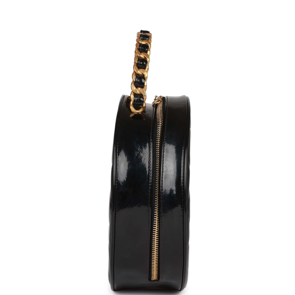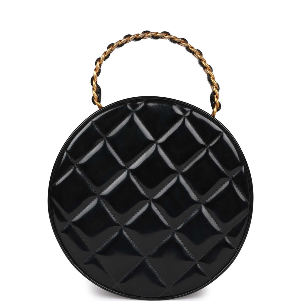 Vintage Chanel Round Vanity Bag Black and White Patent Leather Antique Gold Hardware
