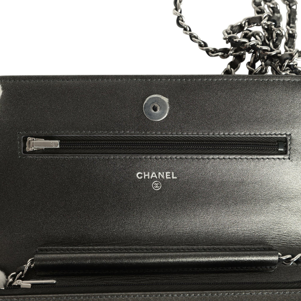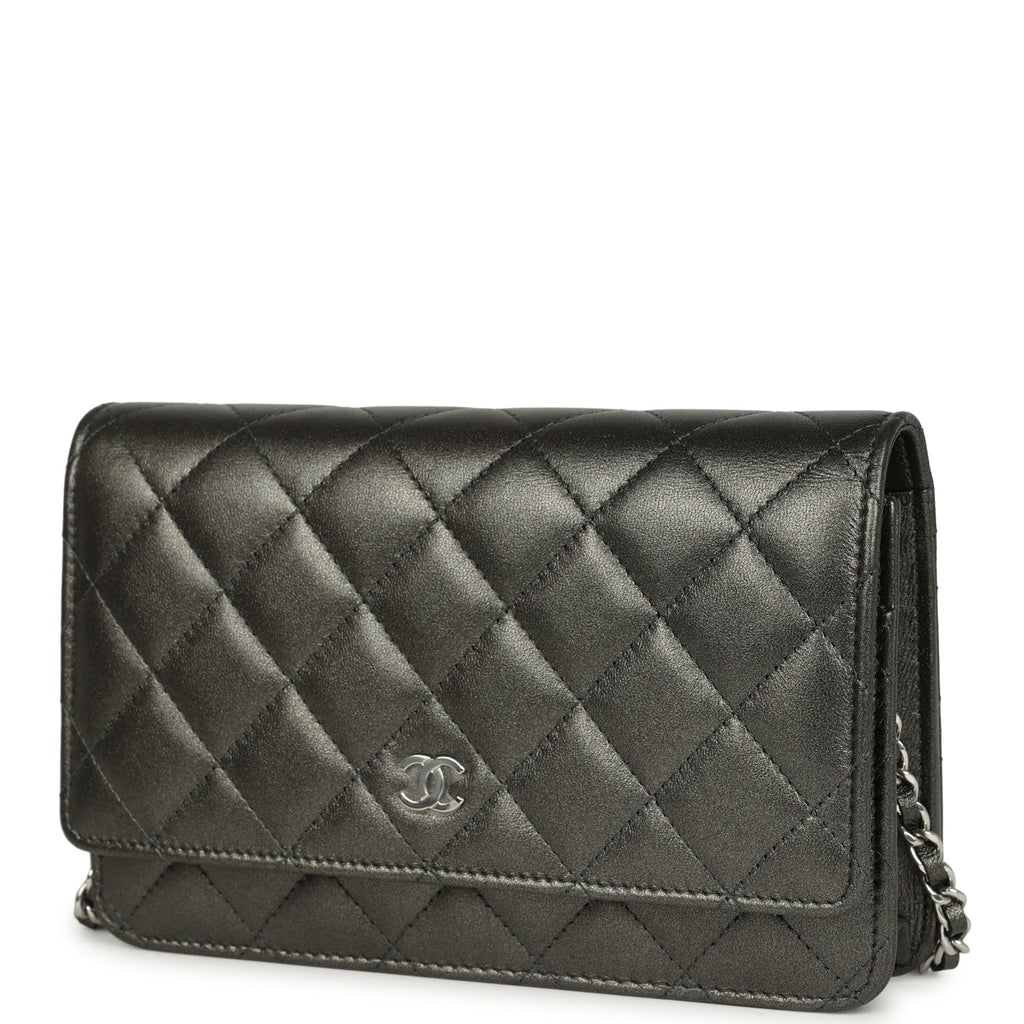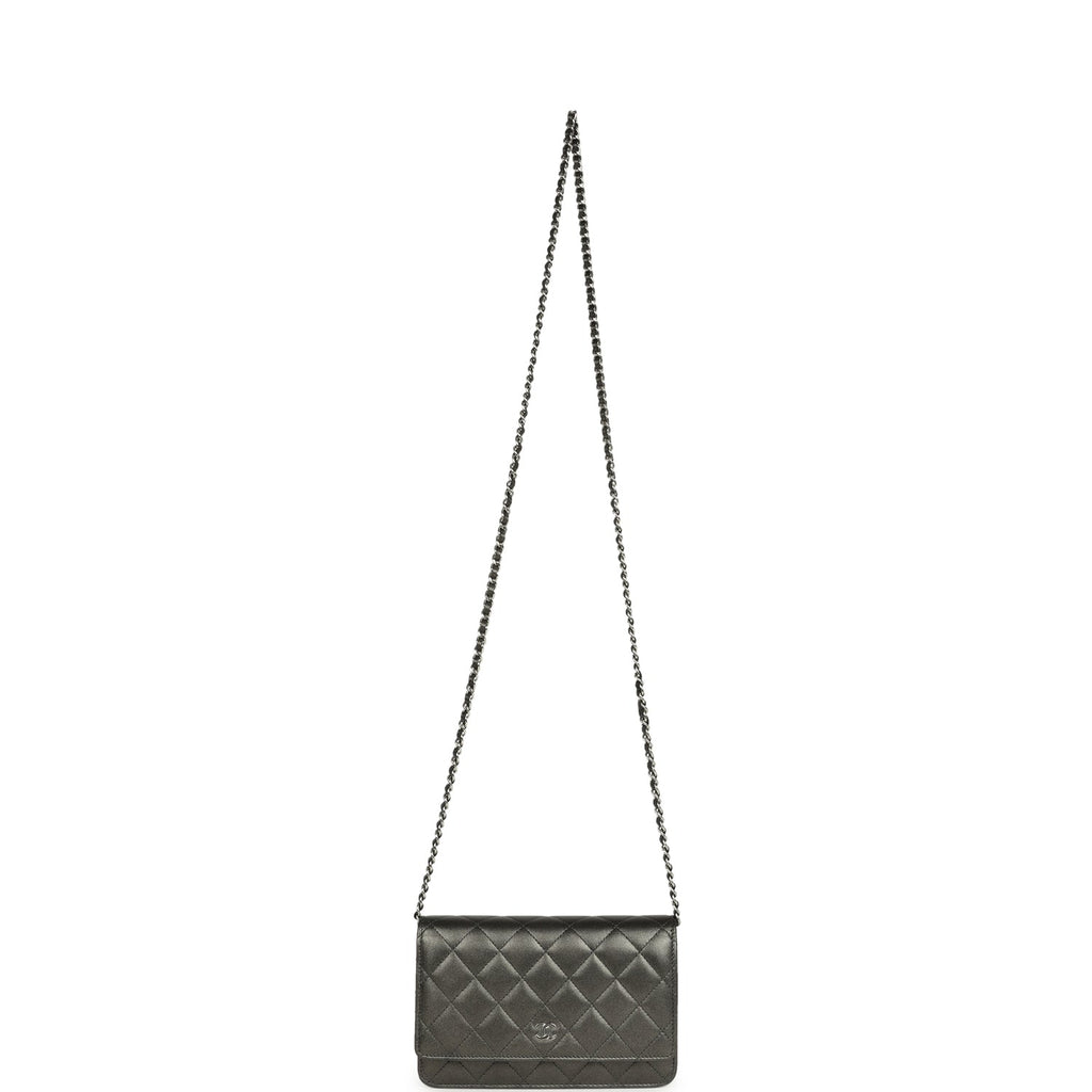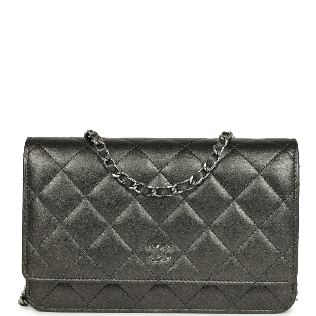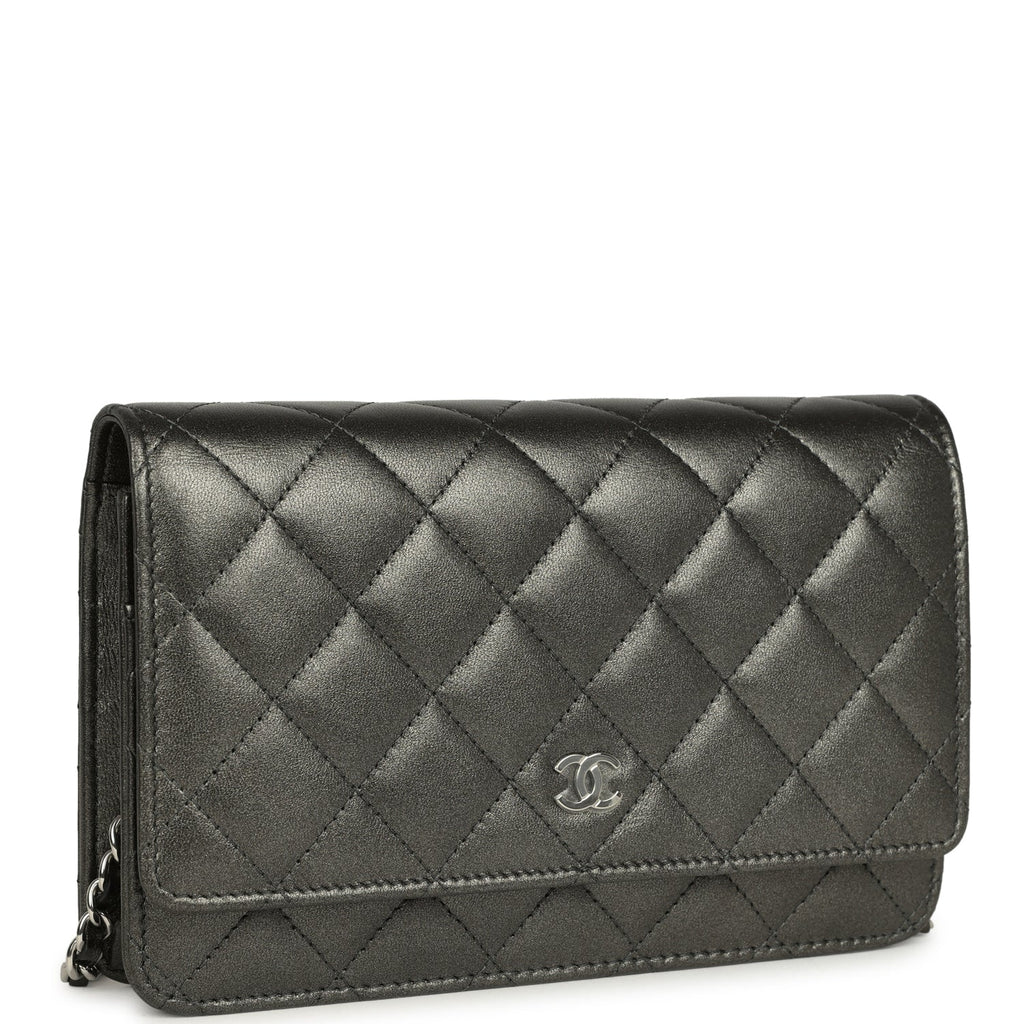 Chanel Wallet On Chain WOC Metallic Grey Lambskin Silver Hardware
