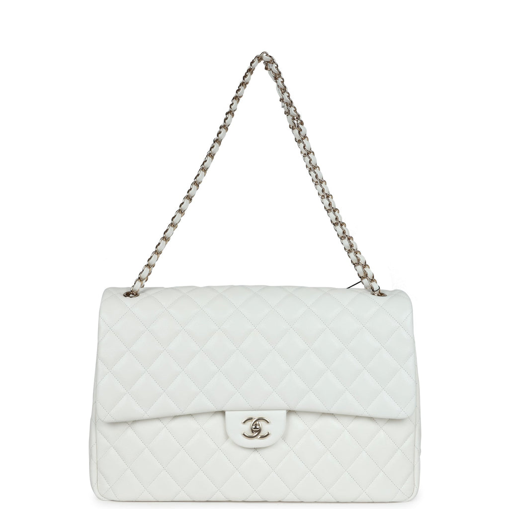 Chanel XXL Classic Single Flap Bag White Shiny Caviar Light Gold Hardware