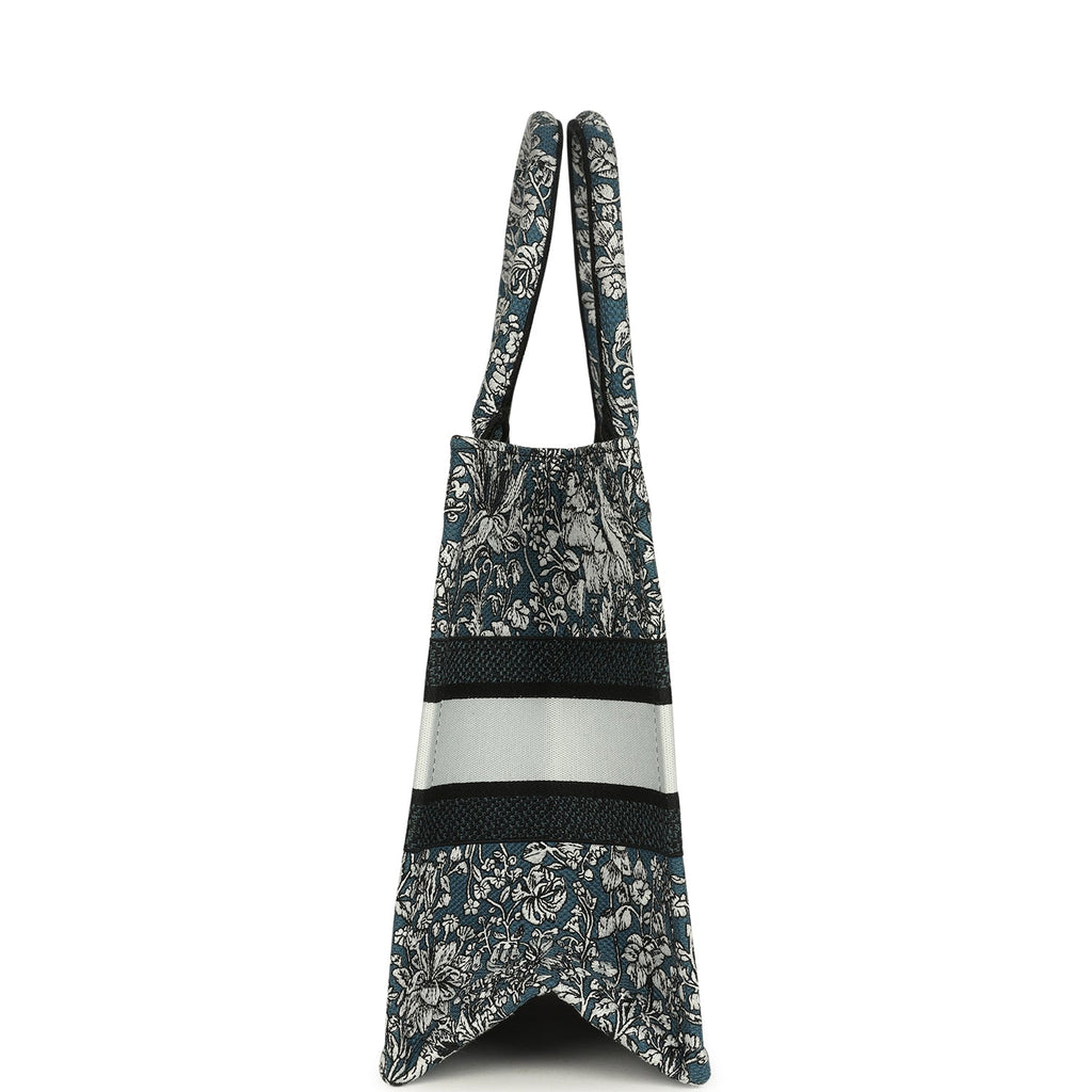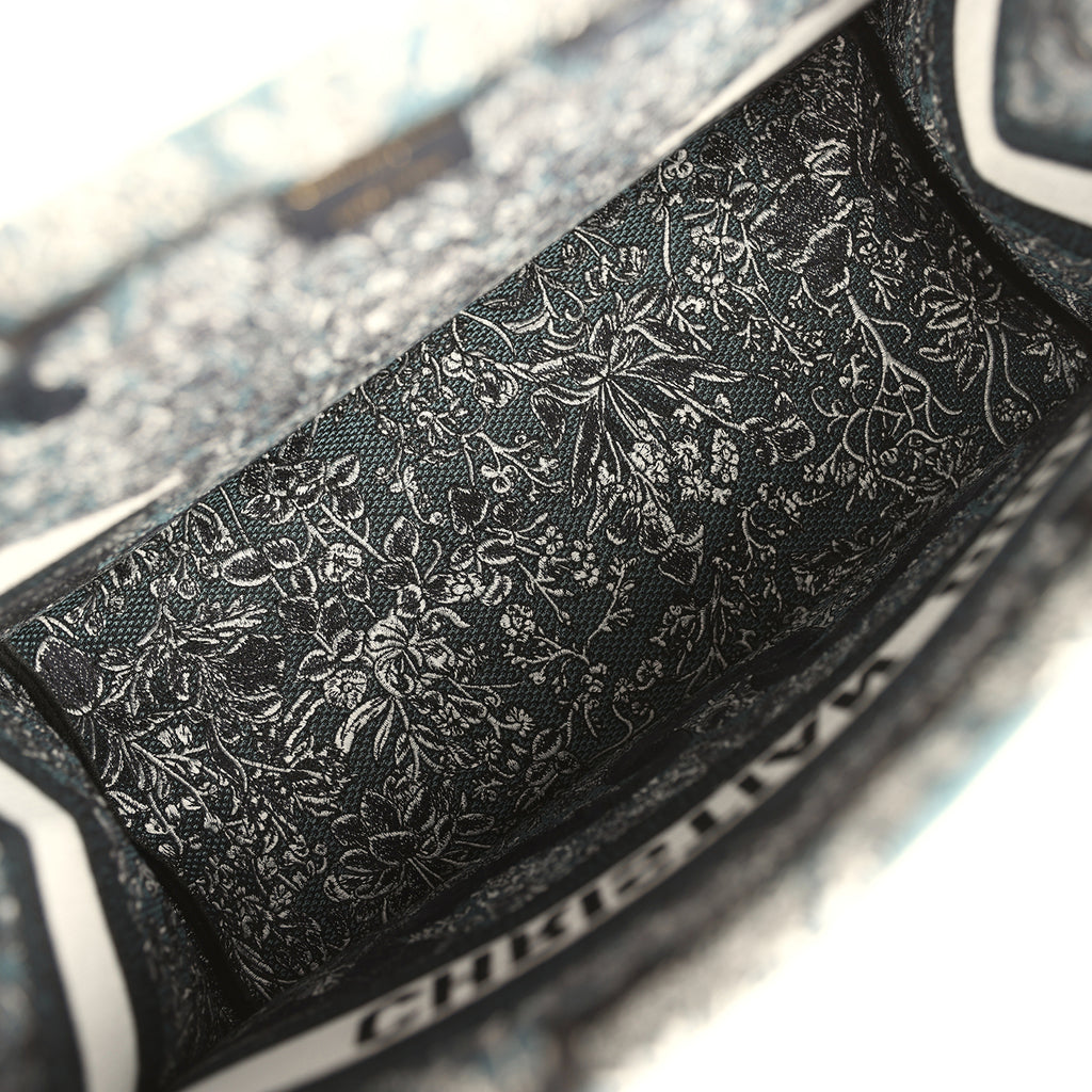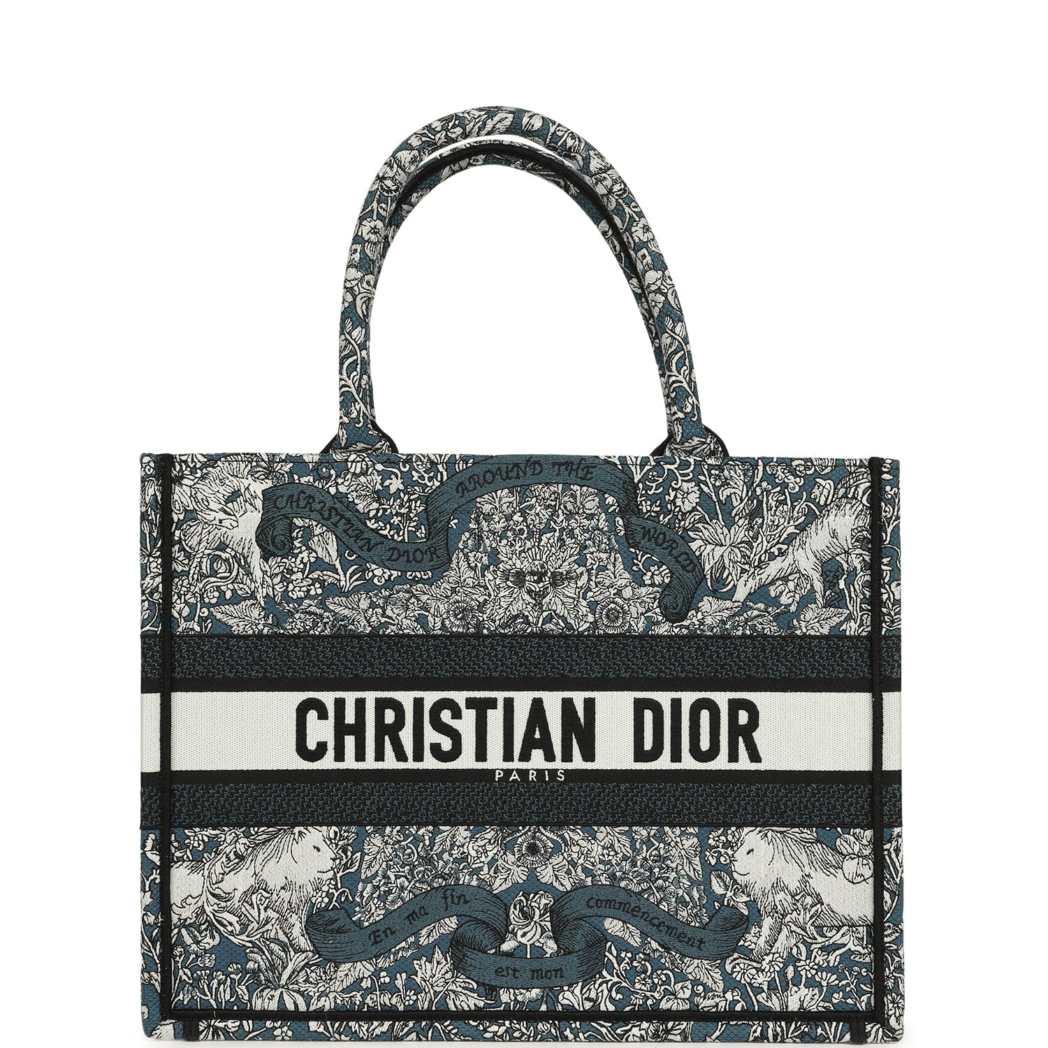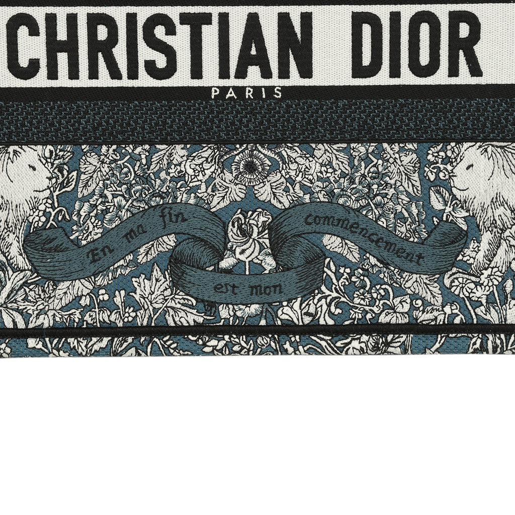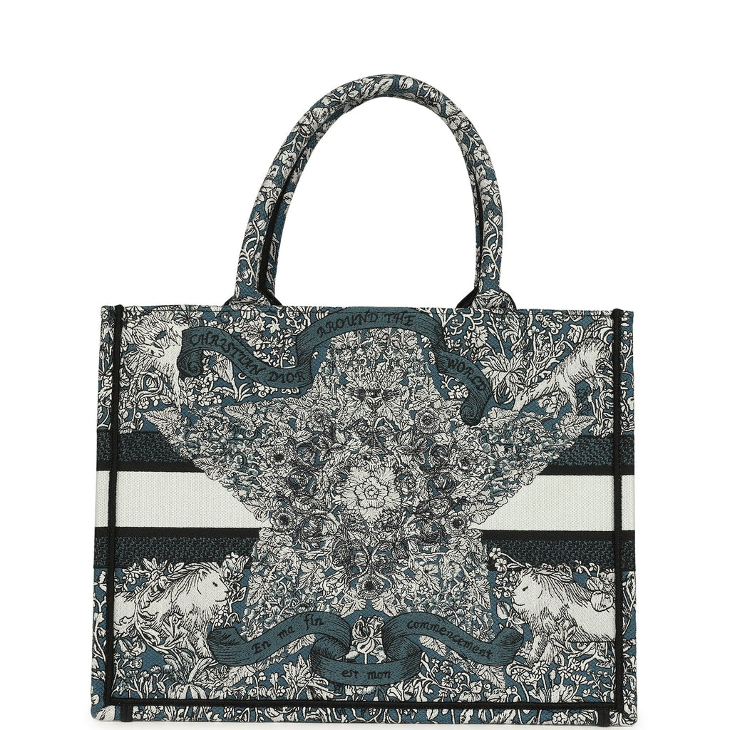 Christian Dior "All Around The World" Medium Book Tote Grey and Teal Multicolor Embroidered Canvas