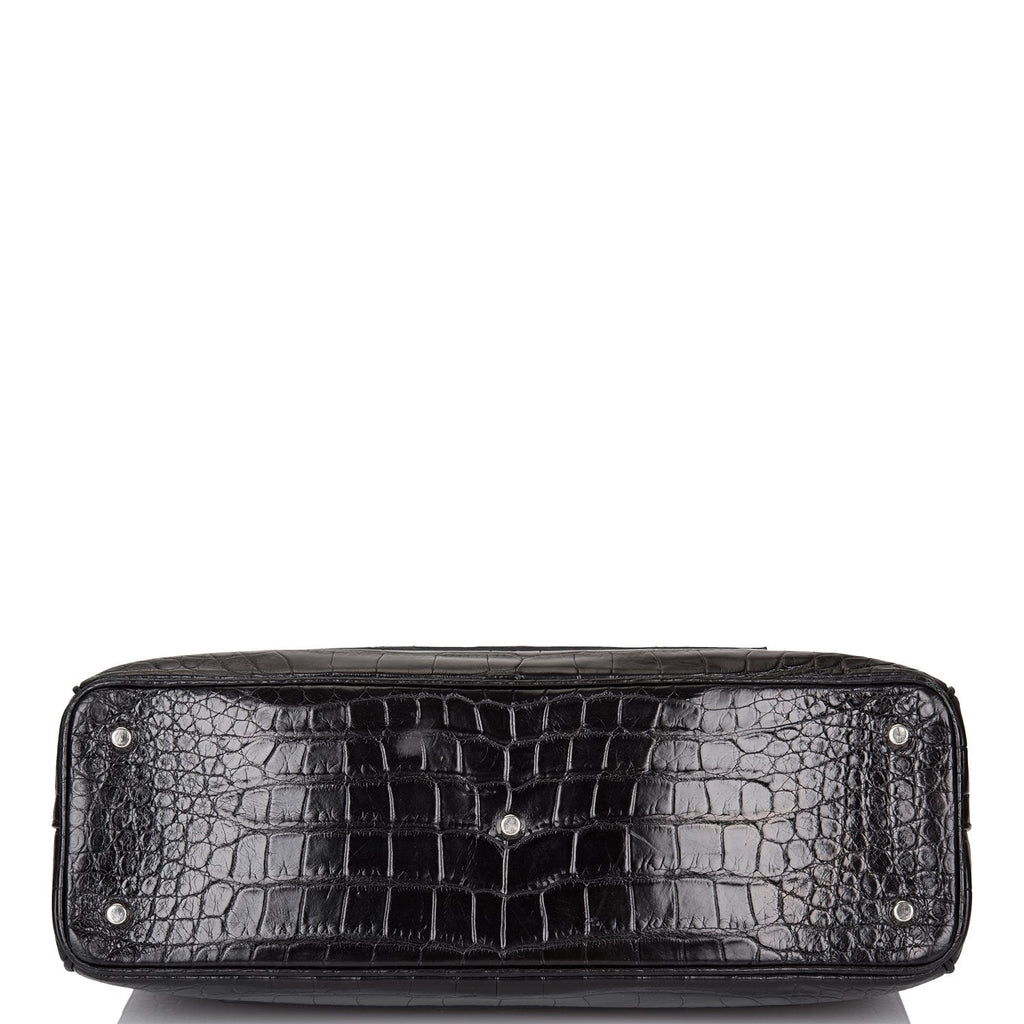 Pre-owned Christian Dior Diorissimo Pocket Tote Black Matte Alligator Silver Hardware