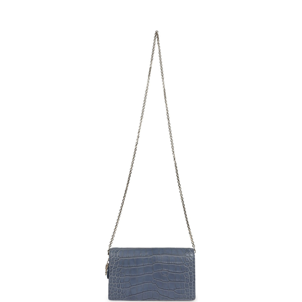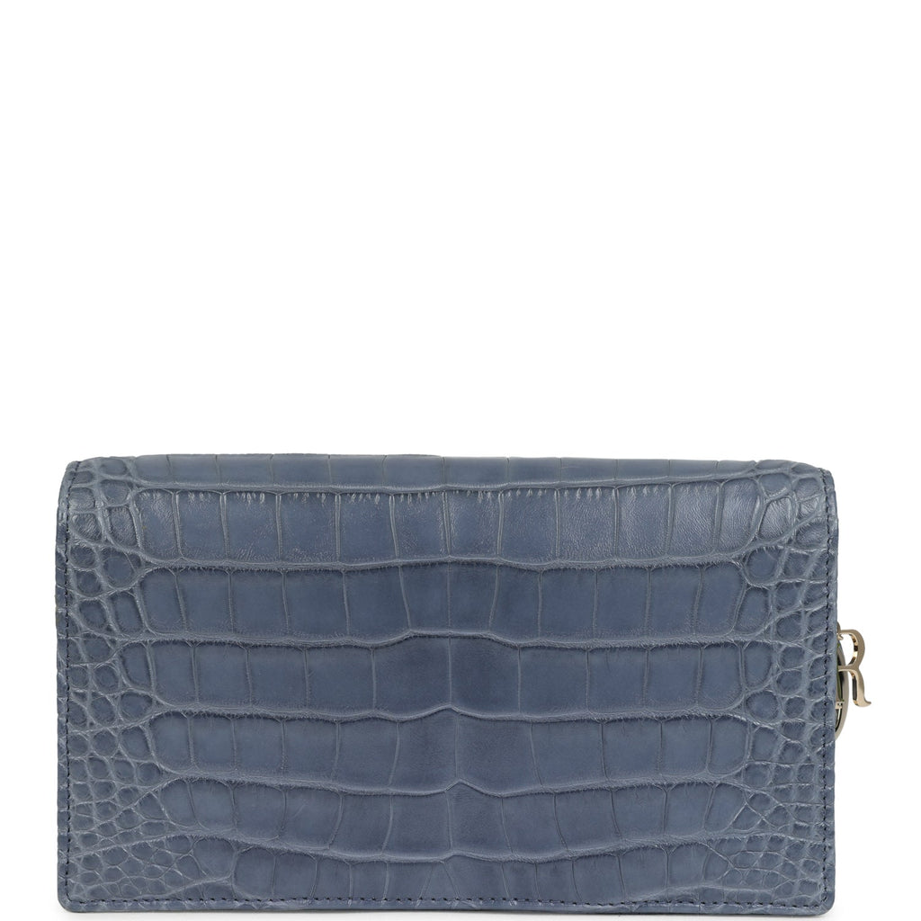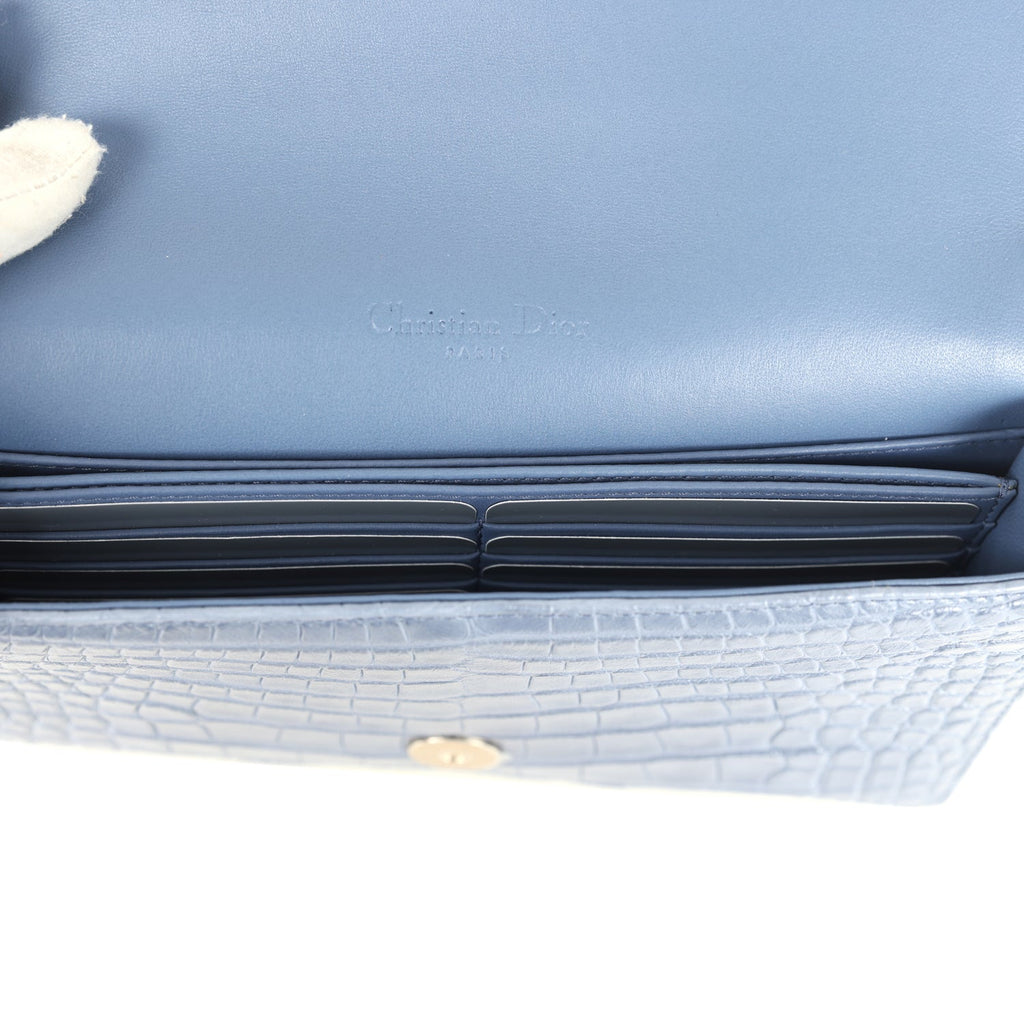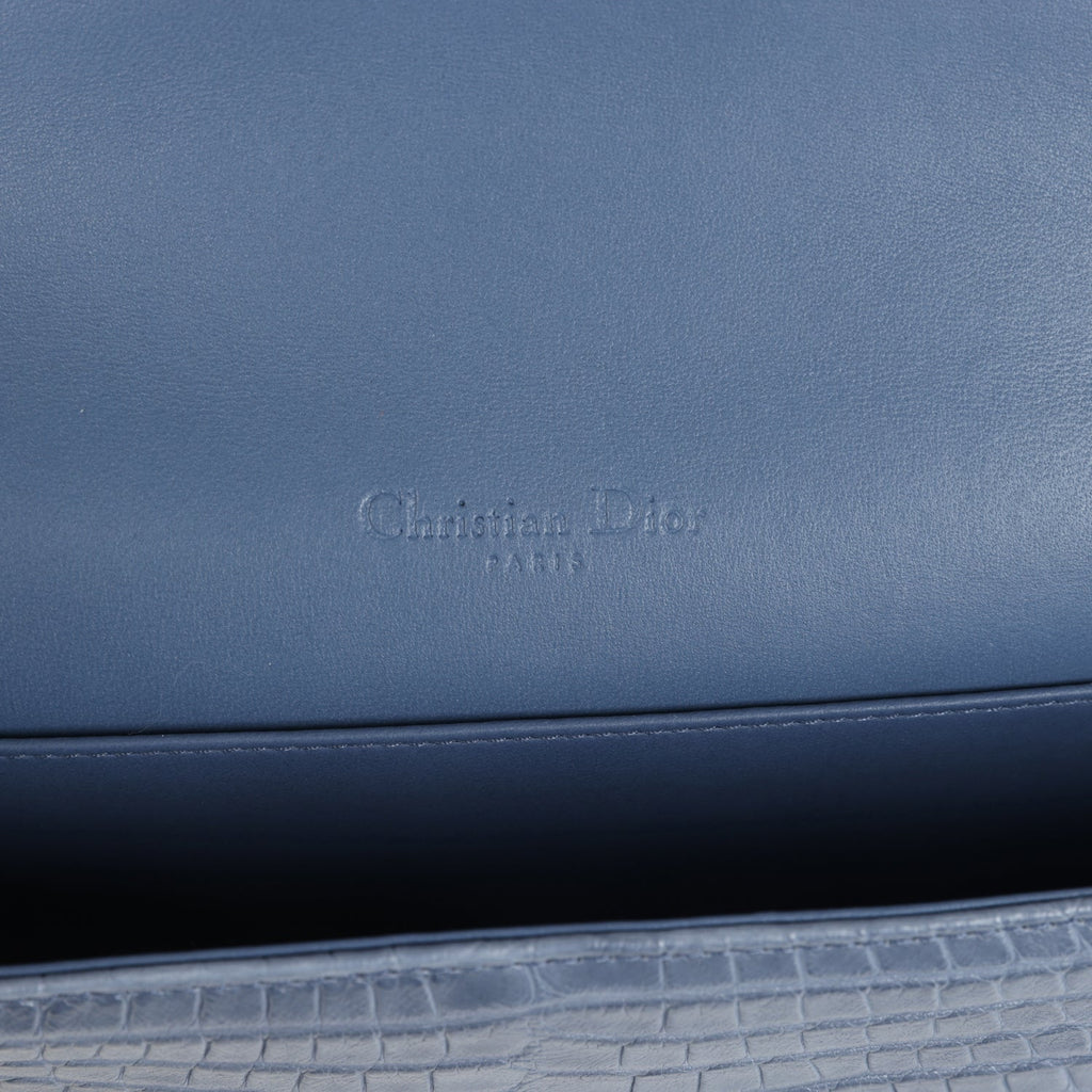 Christian Dior Convertible Clutch Bag Blue Alligator Light Gold Hardware