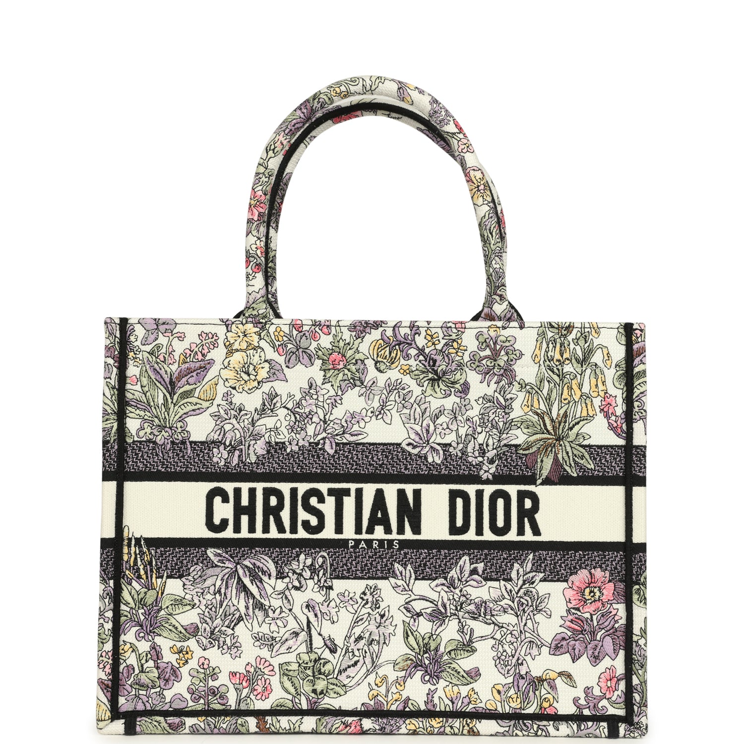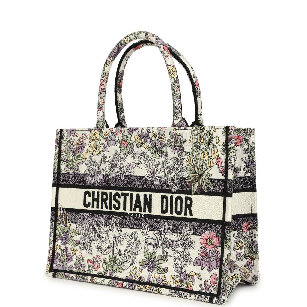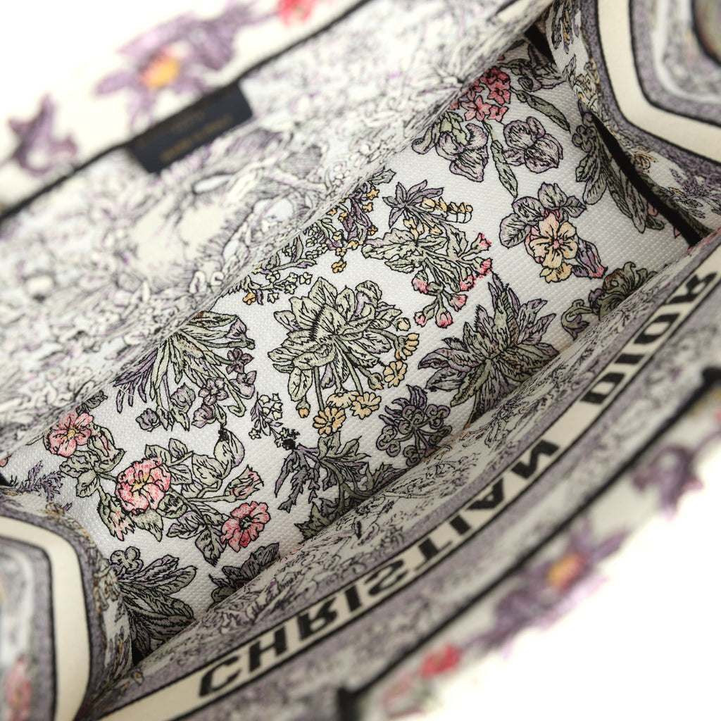 Christian Dior "Fleurs" Medium Book Tote White and Purple Multicolor Embroidered Canvas