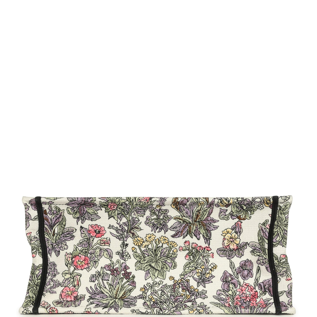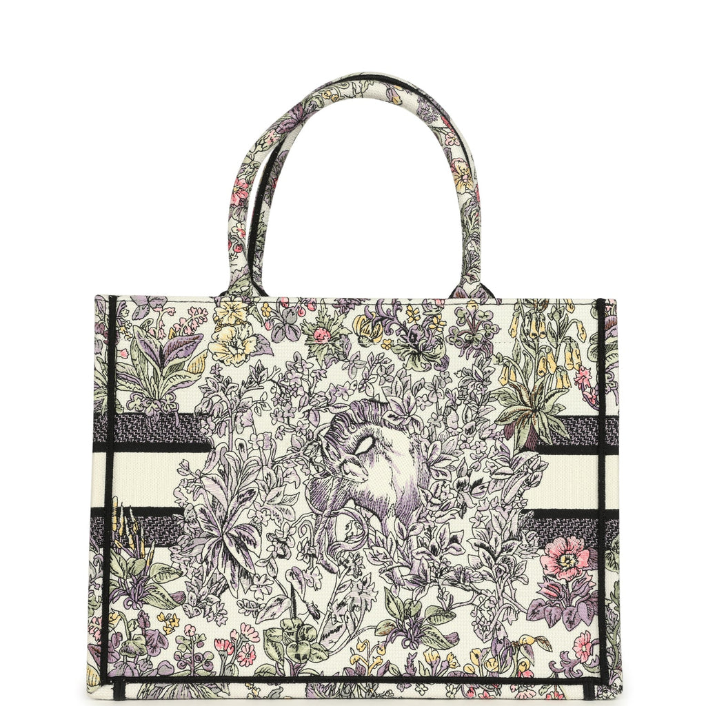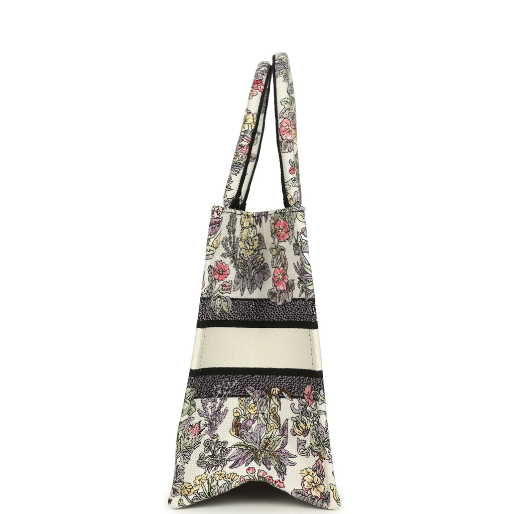 Christian Dior "Fleurs" Medium Book Tote White and Purple Multicolor Embroidered Canvas