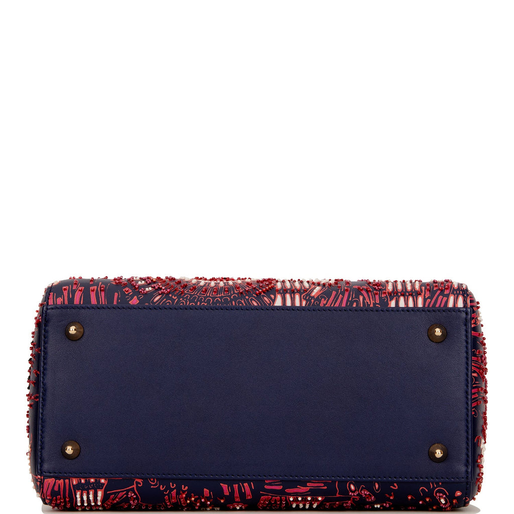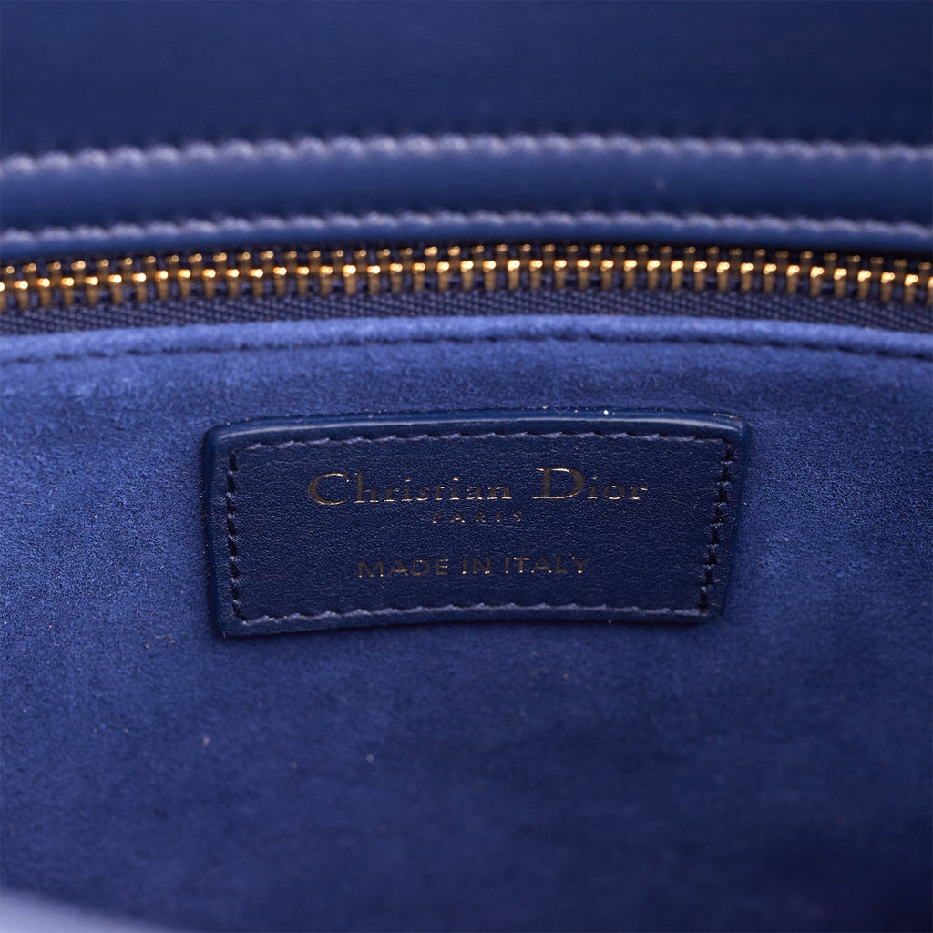 Christian Dior Medium Lady Dior Tote Navy Beaded Leather Gold Hardware
