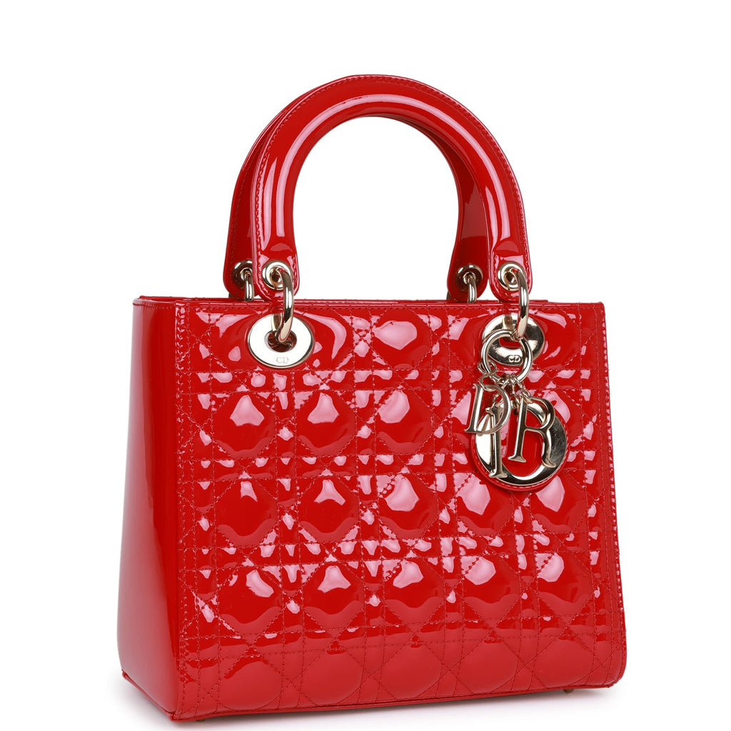Christian Dior Medium Lady Dior Tote Red Patent Gold Hardware