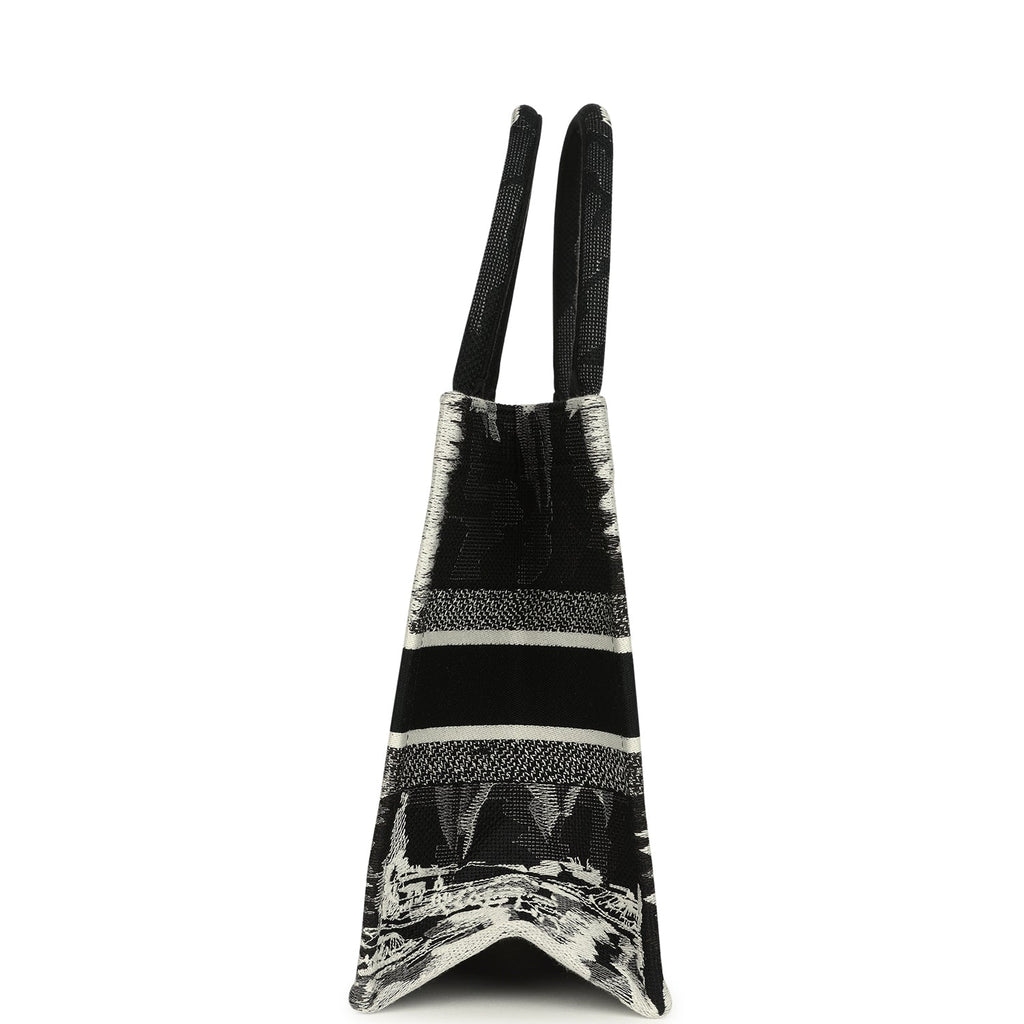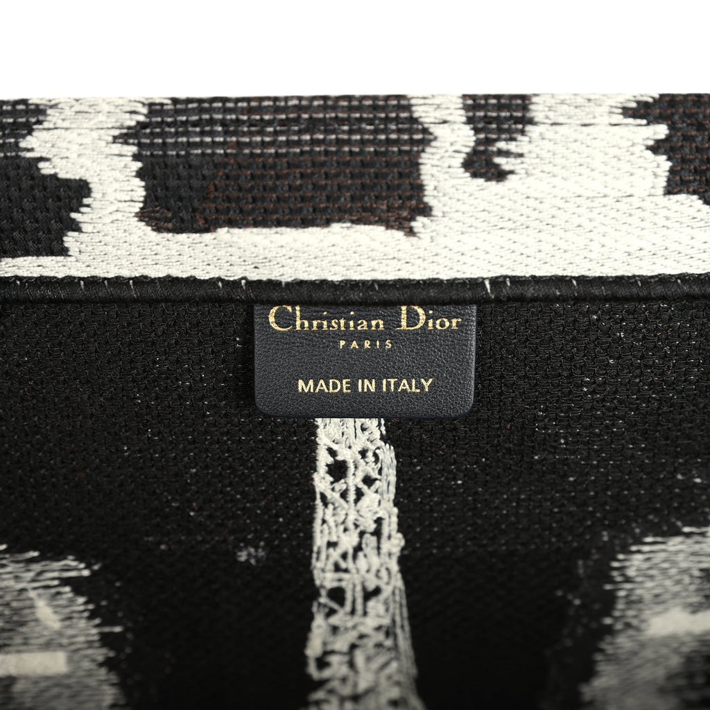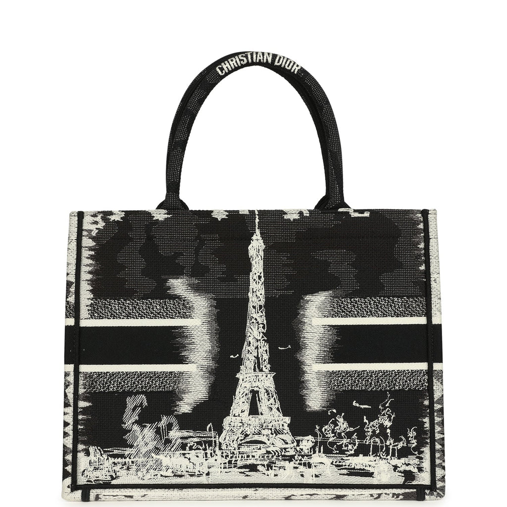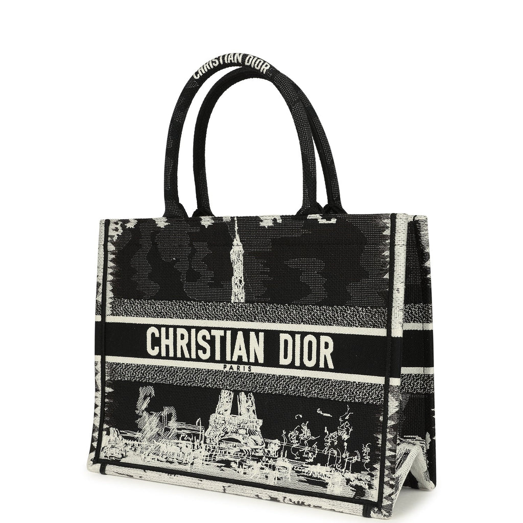 Christian Dior "Paris" Medium Book Tote Black and White Embroidered Canvas