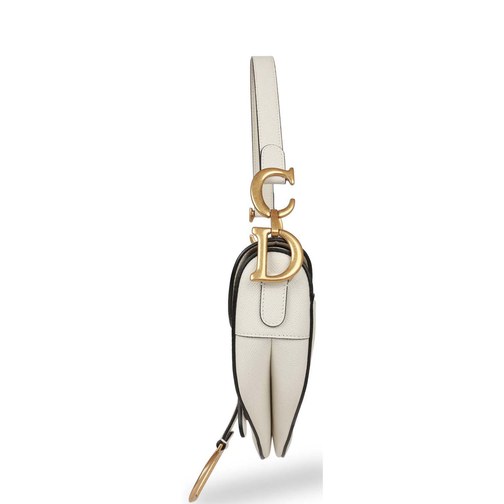 Pre-owned Christian Dior Saddle Bag White Grained Calfskin Gold Hardware