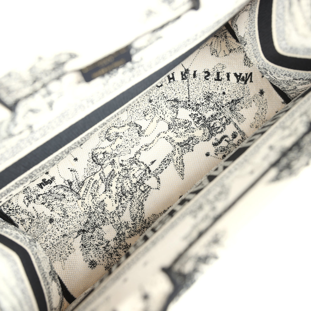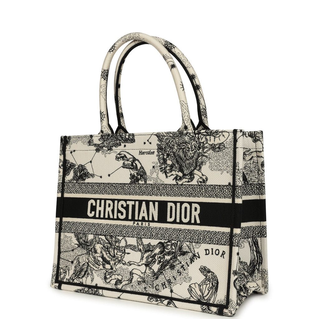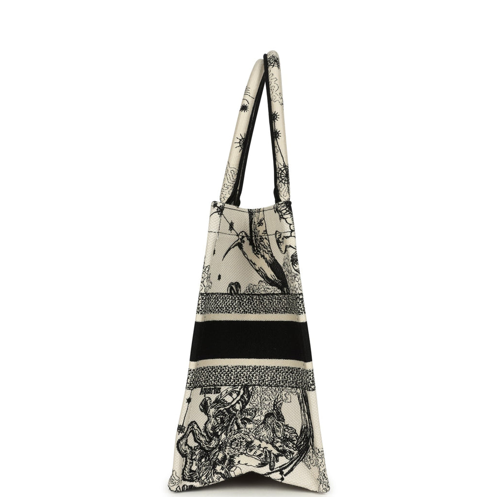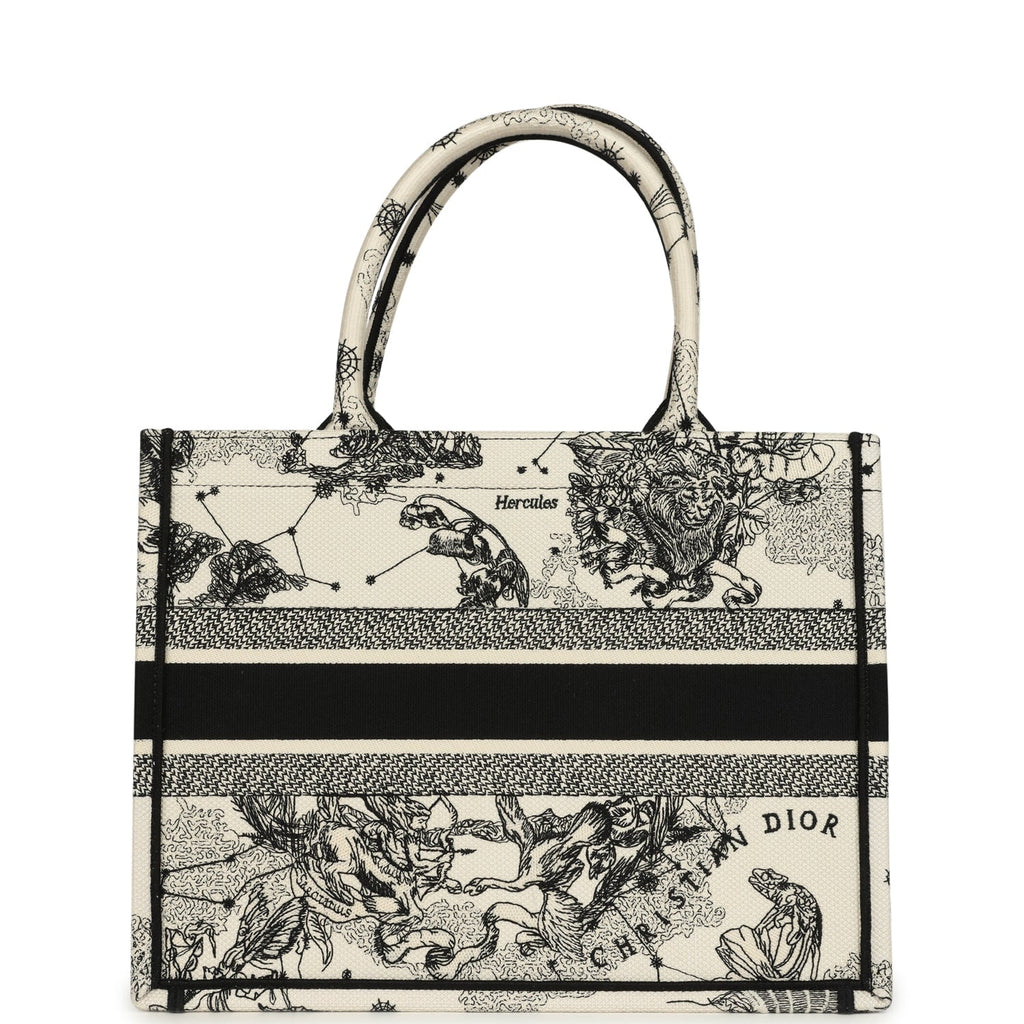Christian Dior "Zodiac" Medium Book Tote White and Black Embroidered Canvas