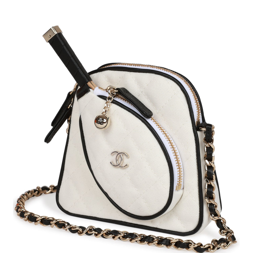 Chanel "Monte-Carlo" Mini Crossbody Tennis Bag White Canvas Light Gold Hardware