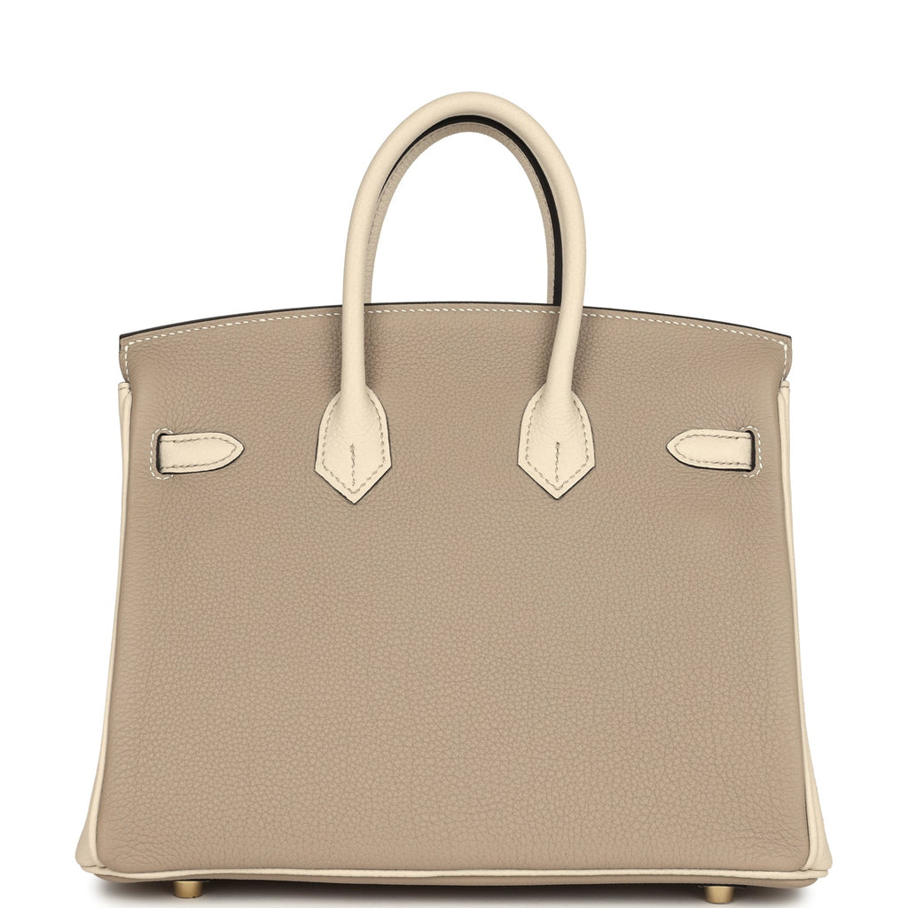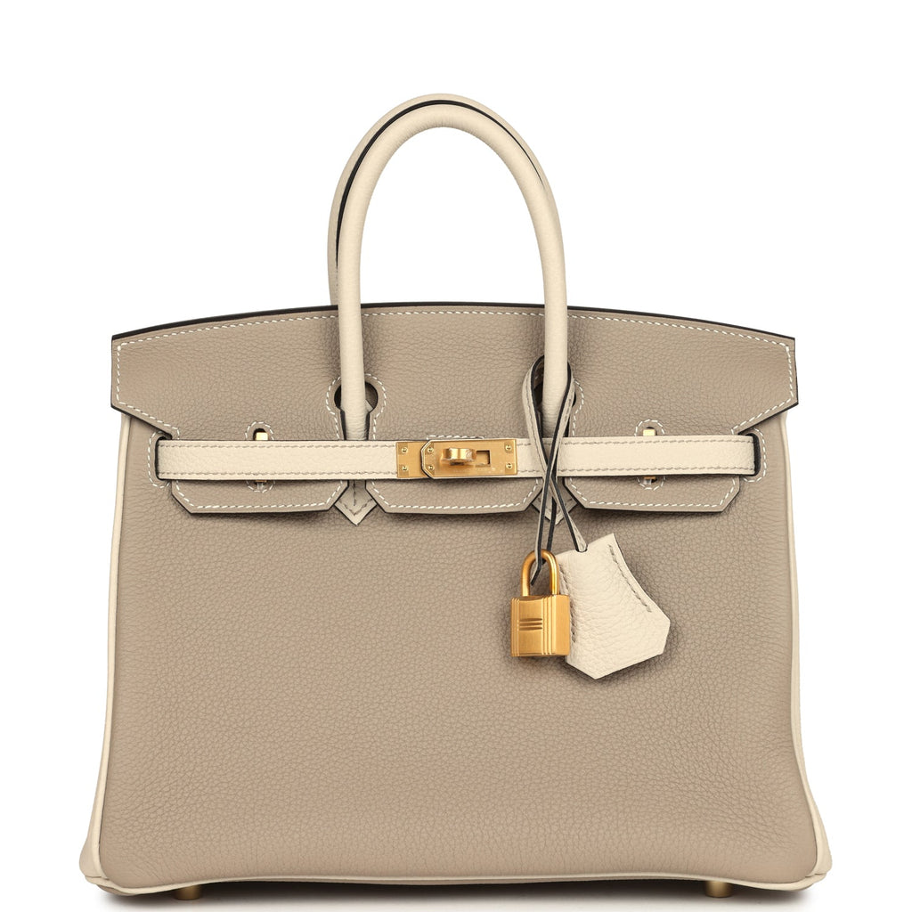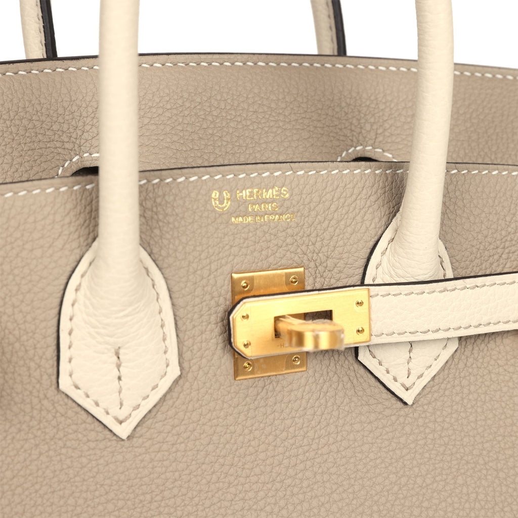 Hermes Special Order (HSS) Birkin 25 Gris Tourterelle and Craie Togo Brushed Gold Hardware