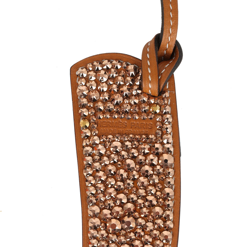 Custom Brown Swarovski Crystal Hermes Paddock Boot Bag Charm Natural Sable Butler and Rose Swift Palladium Hardware