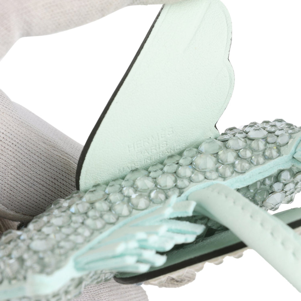 Custom Multicolored Swarovski Crystal Hermes Bedazzled Pegasus Rodeo Bag Charm PM Vert Peppermint Milo Lambskin