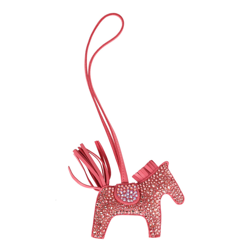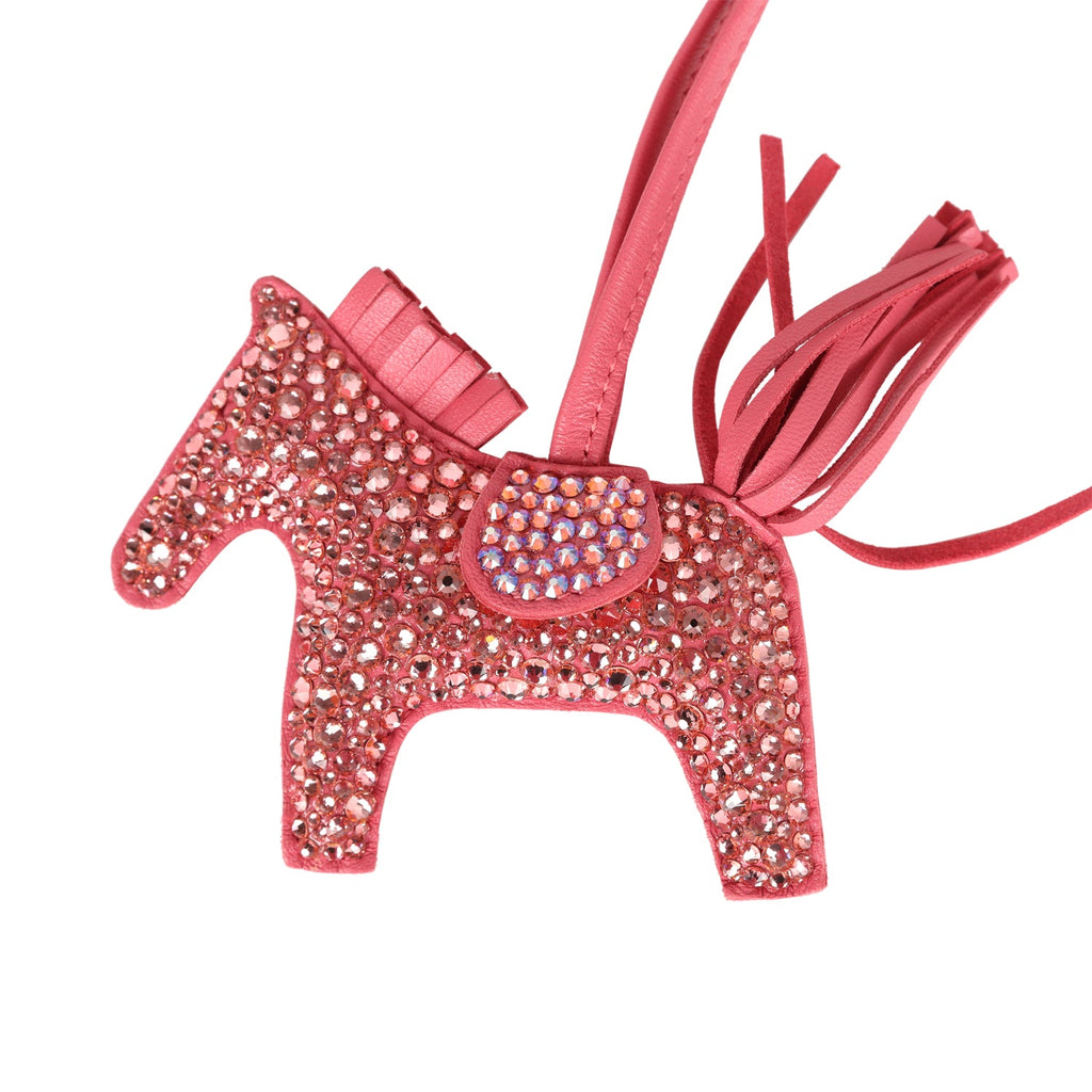 Custom Pink Swarovski Crystal Hermes Rodeo Bag Charm PM Rose Azalee Milo Lambskin