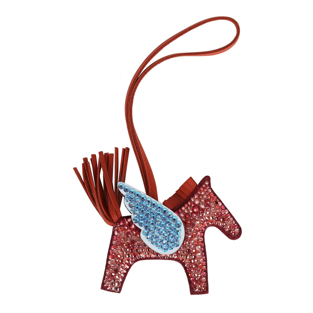 Custom Red Swarovski Crystal Hermes Bedazzled Pegase Rodeo Bag Charm PM Rouge Grenat/Bleu Brume/Cornaline Milo Lambskin