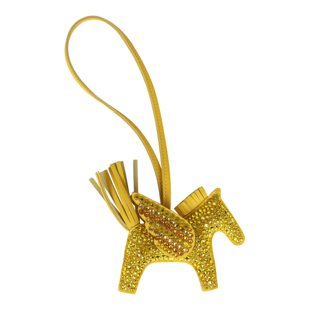Custom Yellow Swarovski Crystal Hermes Bedazzled Pegase Rodeo Bag Charm PM Jaune De Naples Milo Lambskin