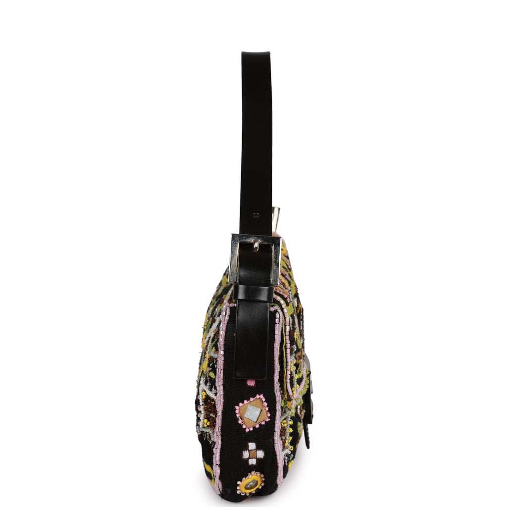 Vintage Fendi Baguette Bag Multicolor Bead Embroidered Canvas Silver Hardware