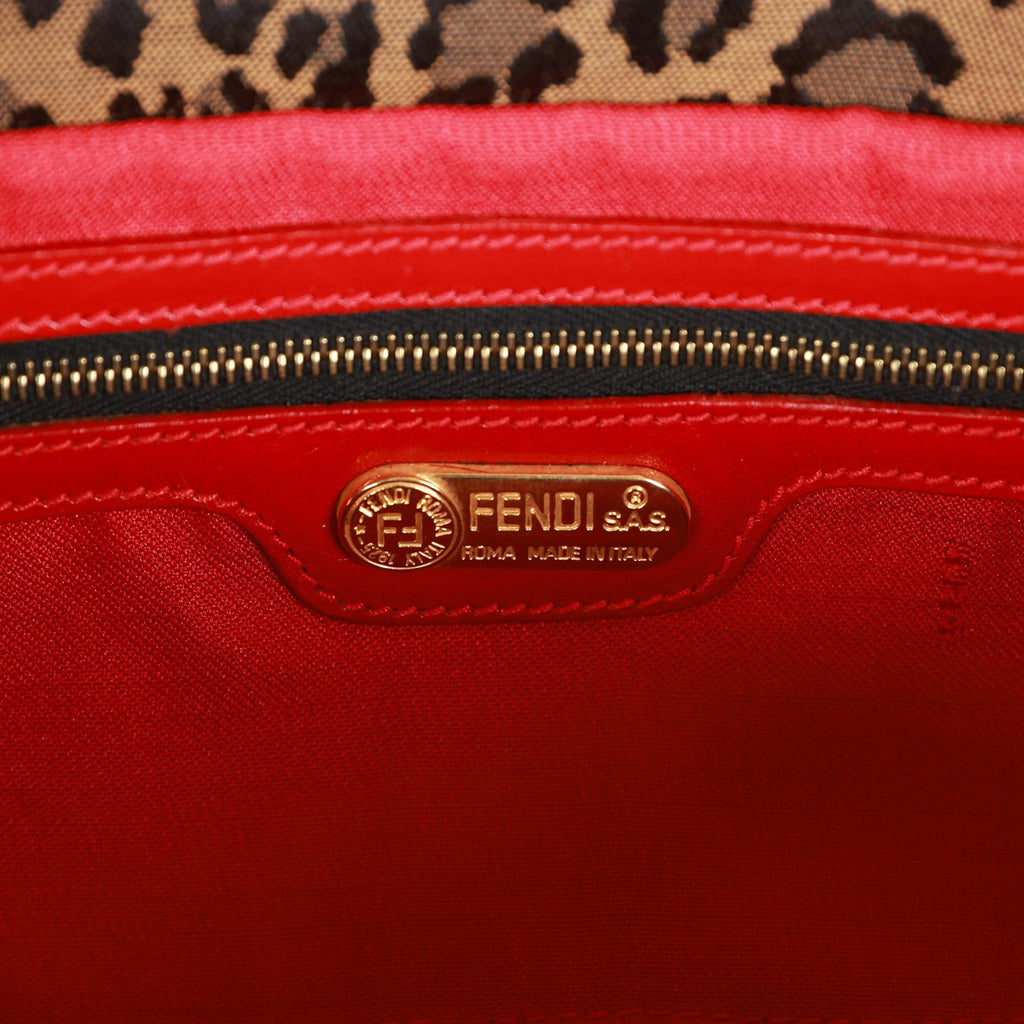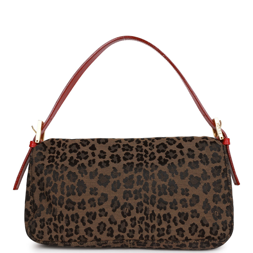 Vintage Fendi Leopard Baguette Bag Red Leather Gold Hardware