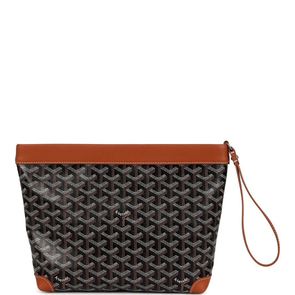 Goyard Cuir Goyardine Canvas Black and Tan Conti Pouch Palladium Hardware