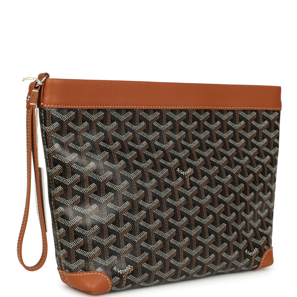 Goyard Goyardine Canvas Black and Tan Conti Pouch Palladium Hardware