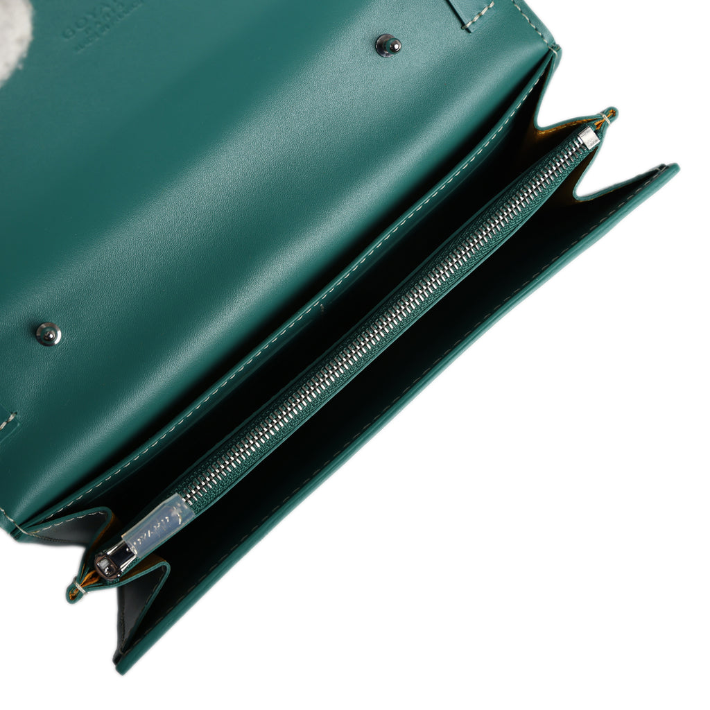 Goyard Goyardine Canvas Green Varenne Continental Wallet Bag Palladium Hardware
