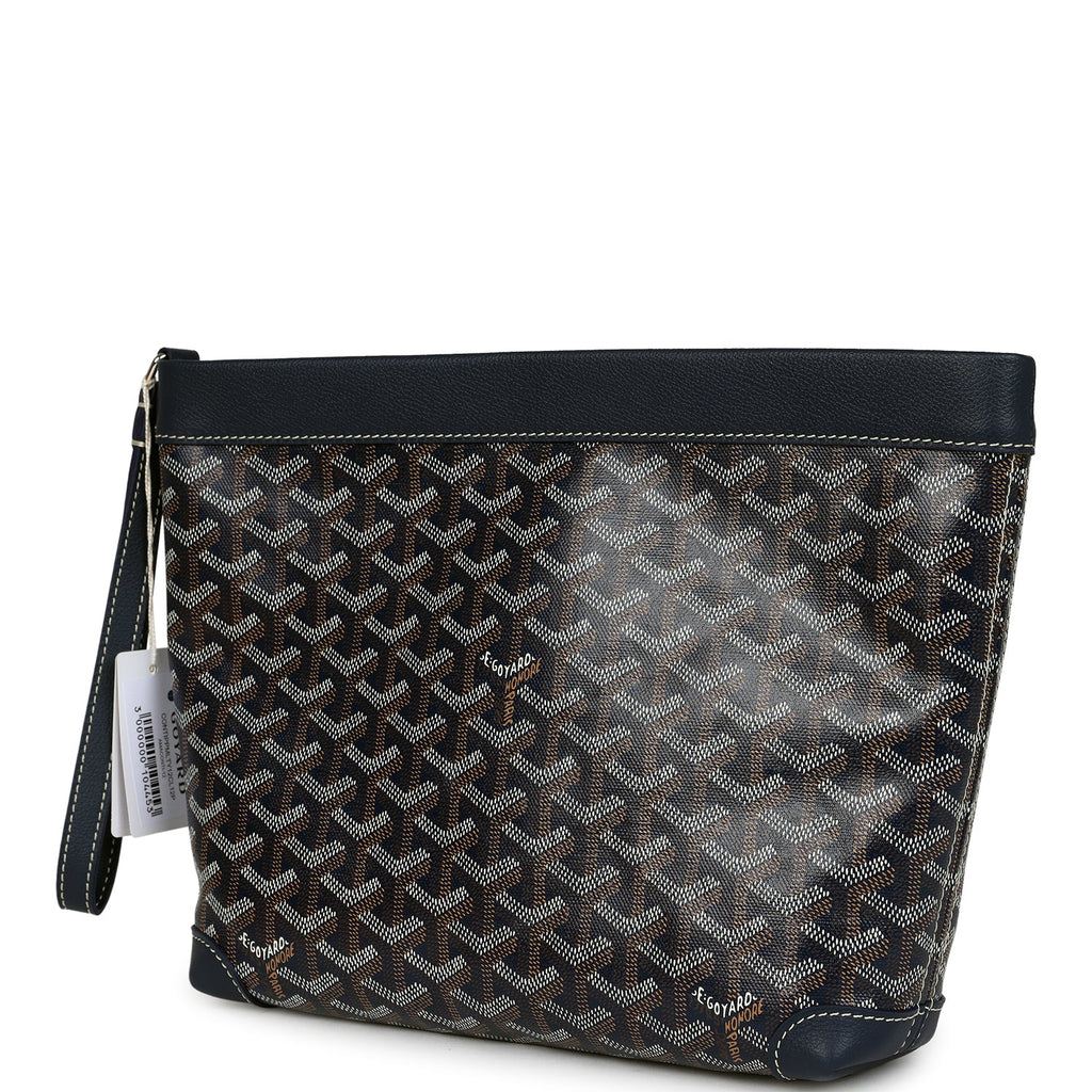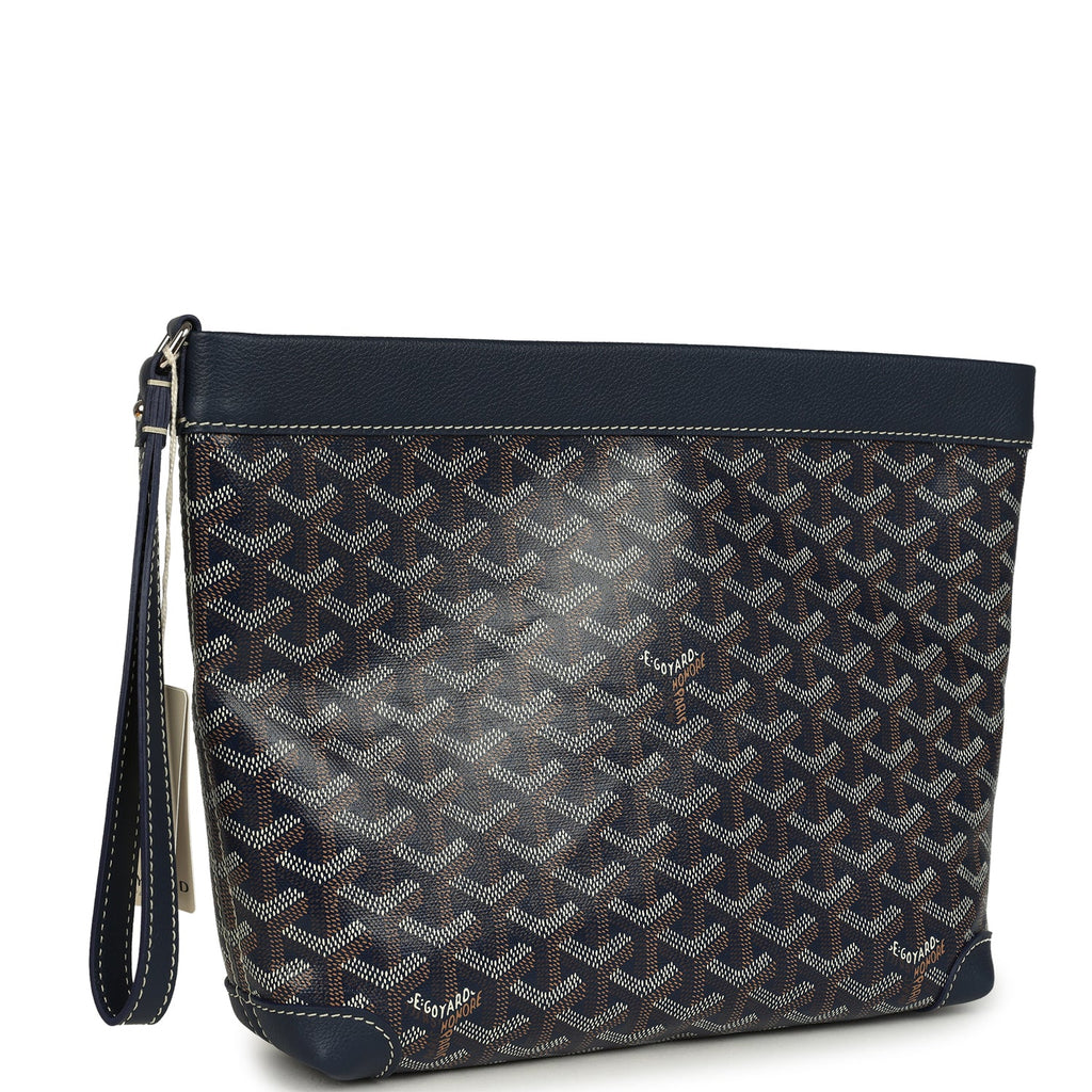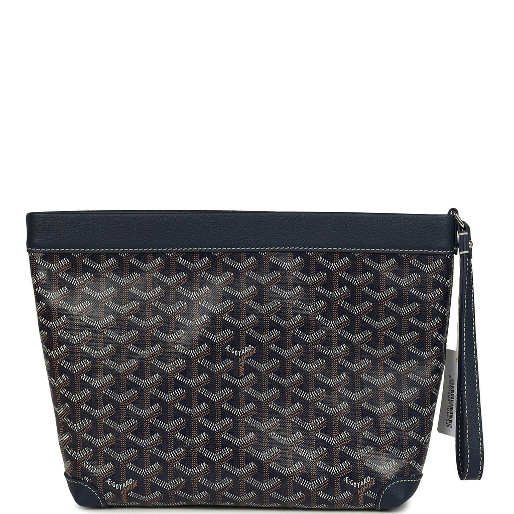 Goyard Goyardine Canvas Navy Blue Conti Pouch Palladium Hardware