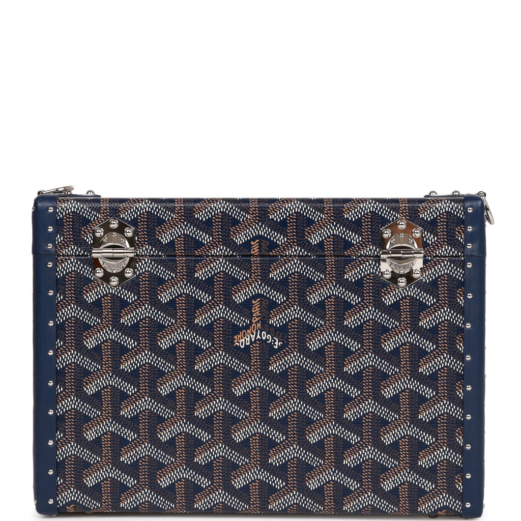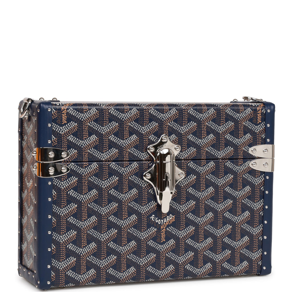Goyard Goyardine Dark Blue Cassette Trunk Clutch/Shoulder Bag Palladium Hardware