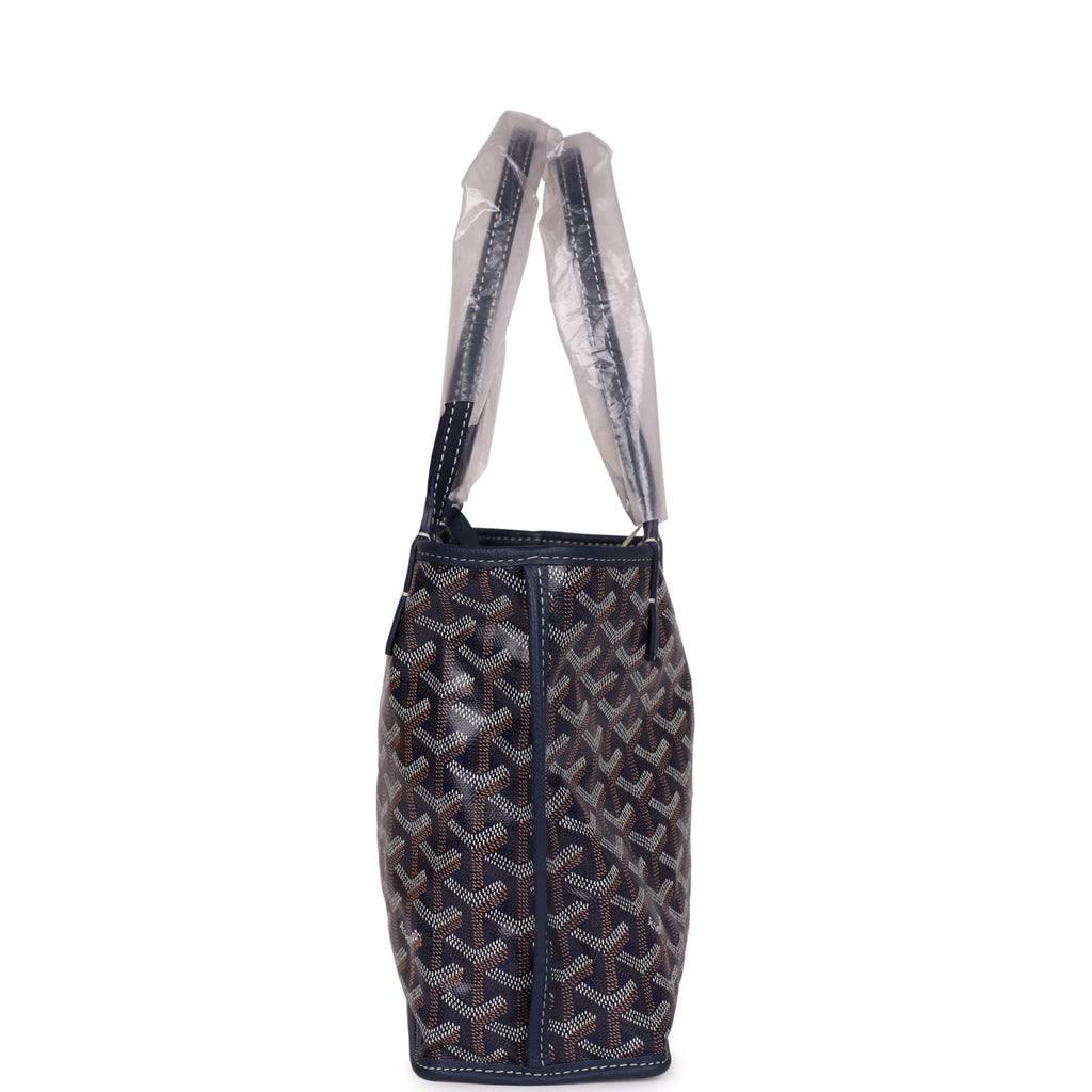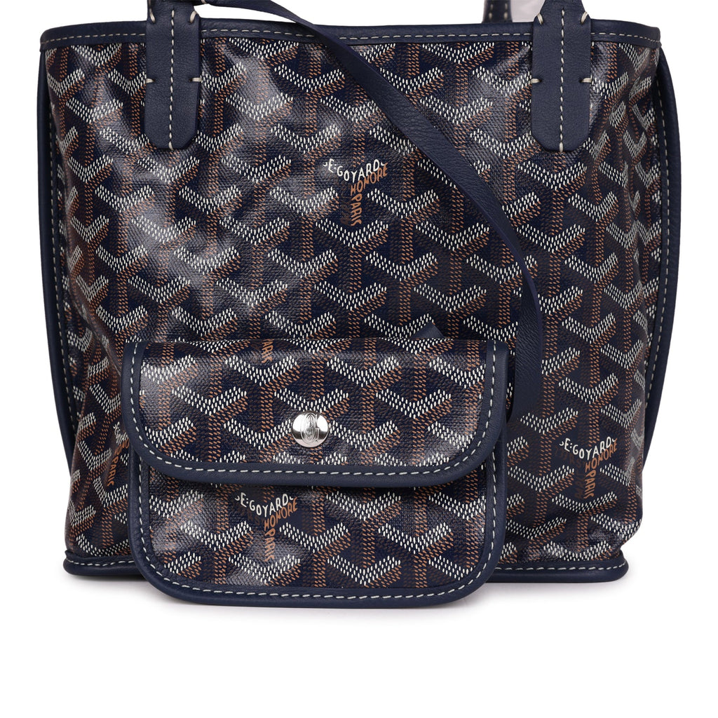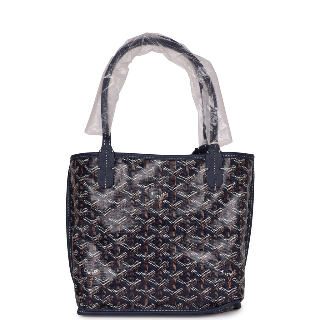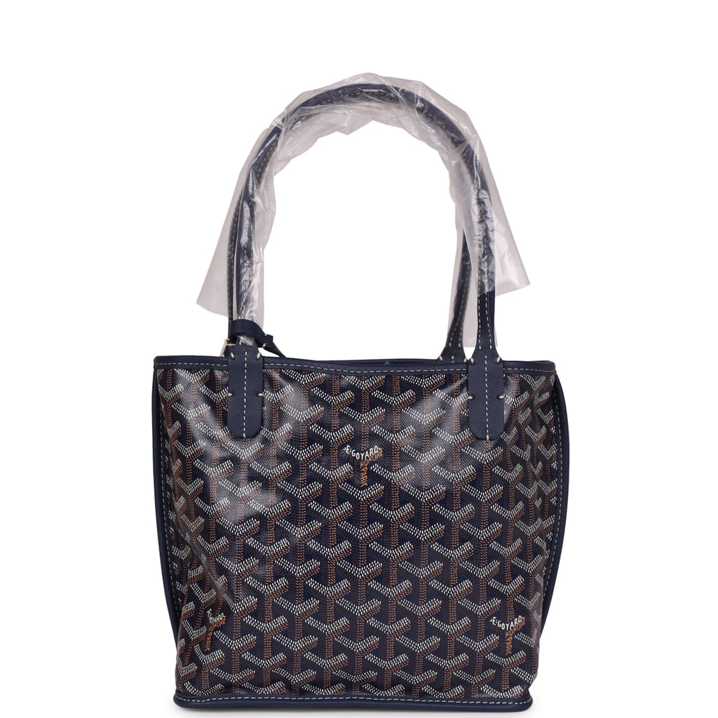 Goyard Goyardine Anjou Navy Mini Tote Bag Palladium Hardware