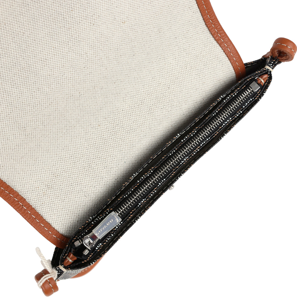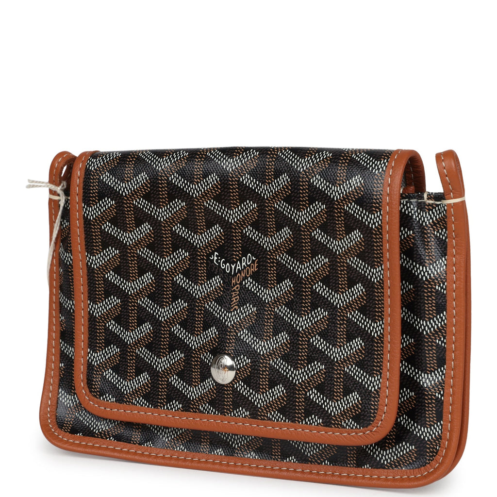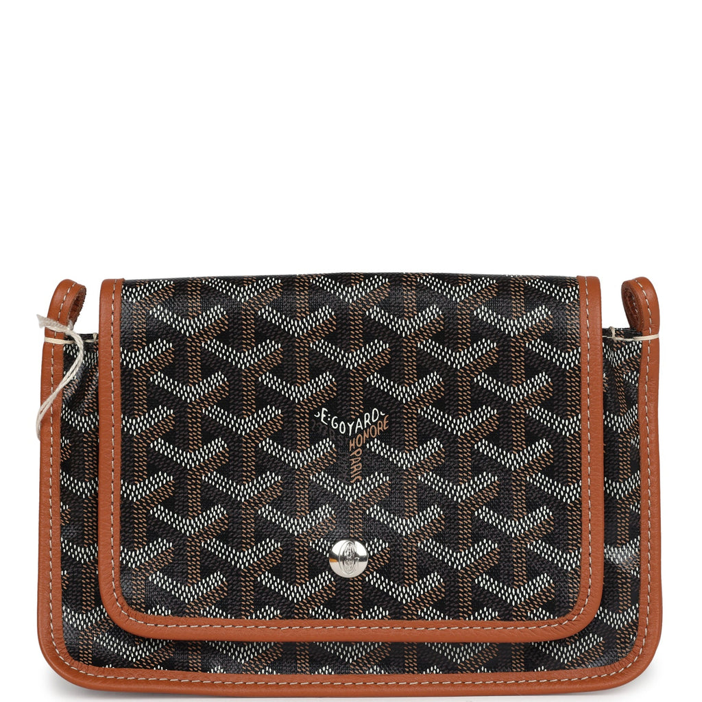 Goyard Plumet Pocket Wallet Black and Brown Goyardine Palladium Hardware