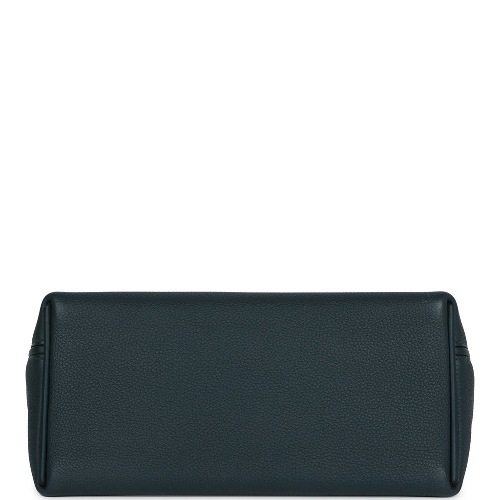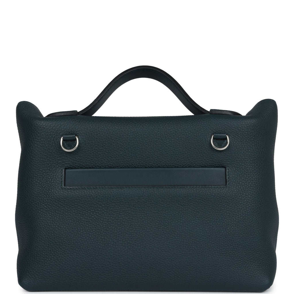 This 24/24 bag is in Vert Cypress togo leather with palladium hardware and has tonal stitching, front turnlock closure, open rear pocket, single flap top handle and removable shoulder strap.