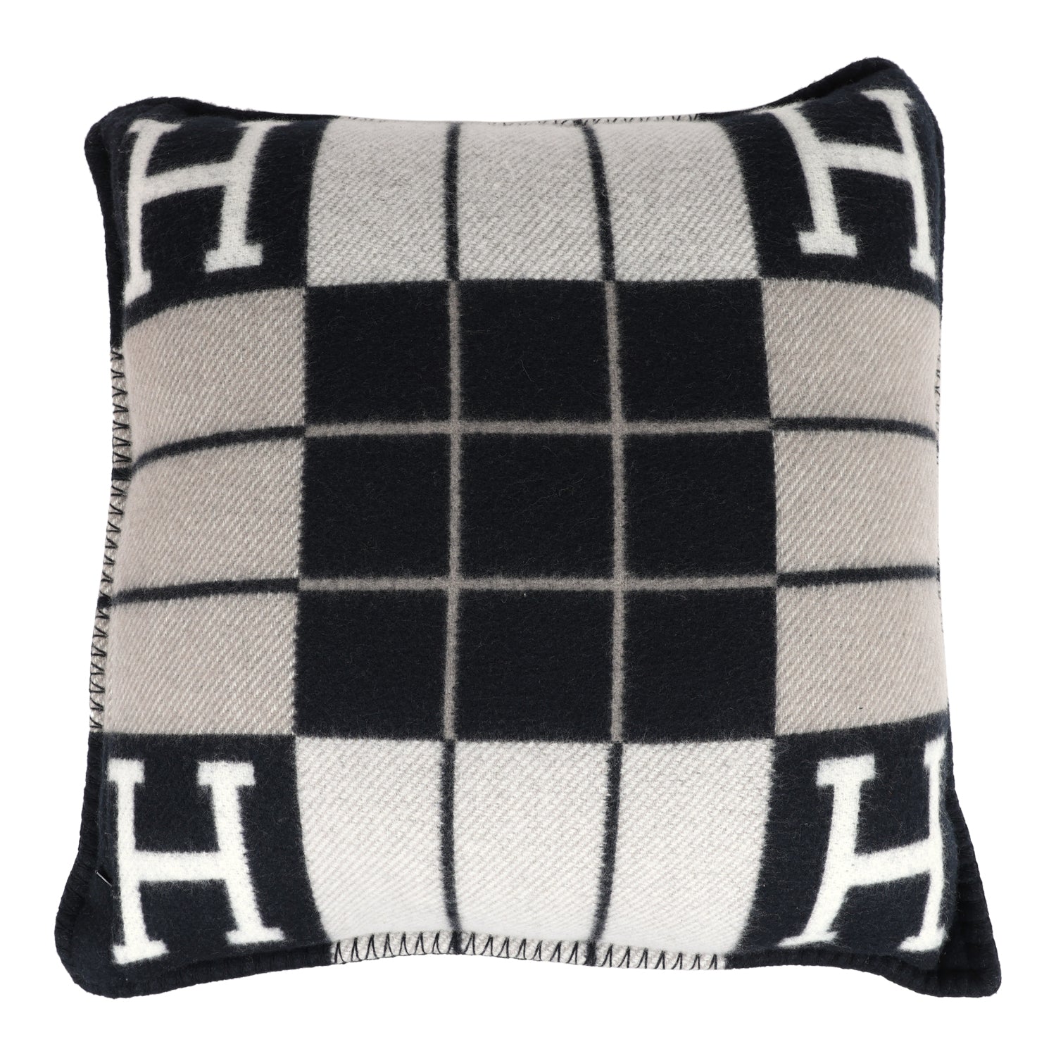 Hermes "Avalon III" Ecru and Black Signature H Pillow PM Single