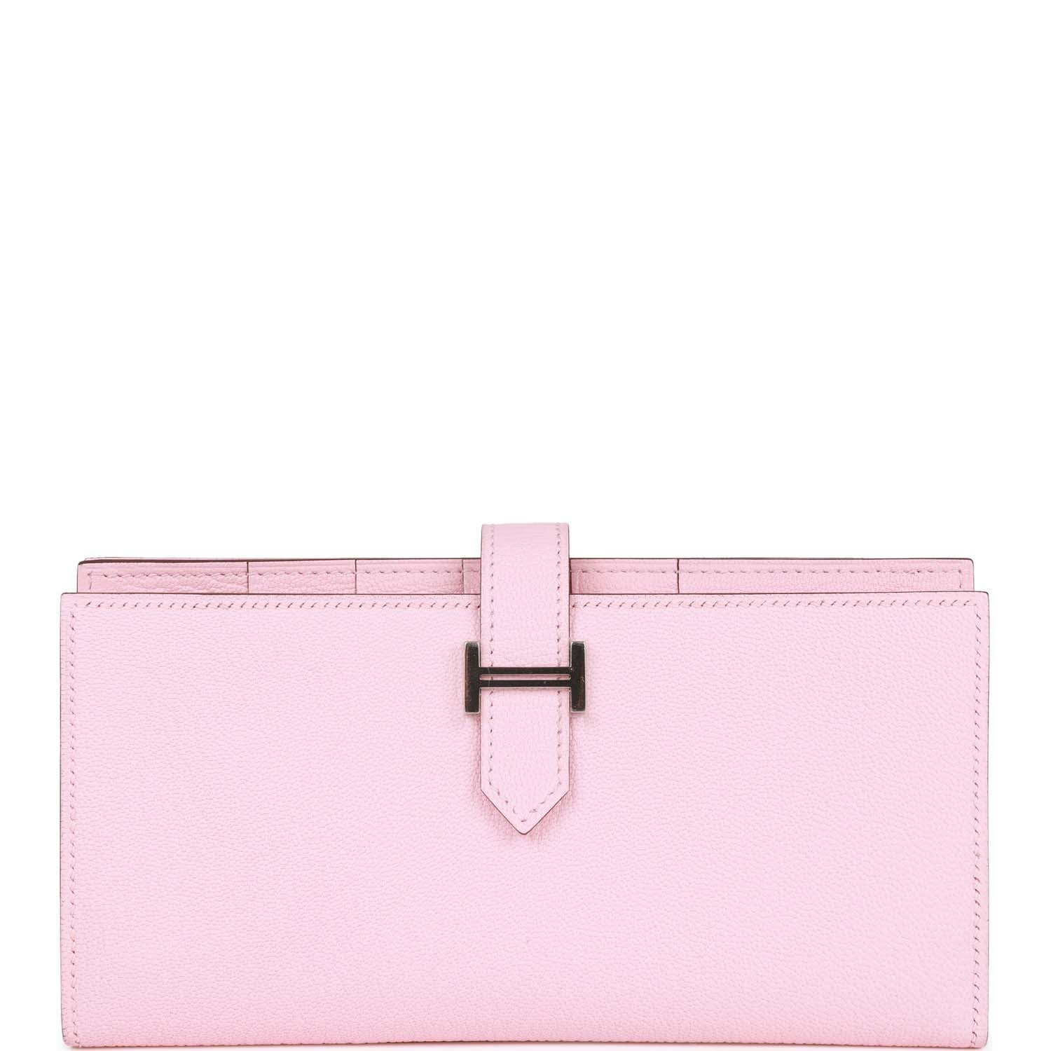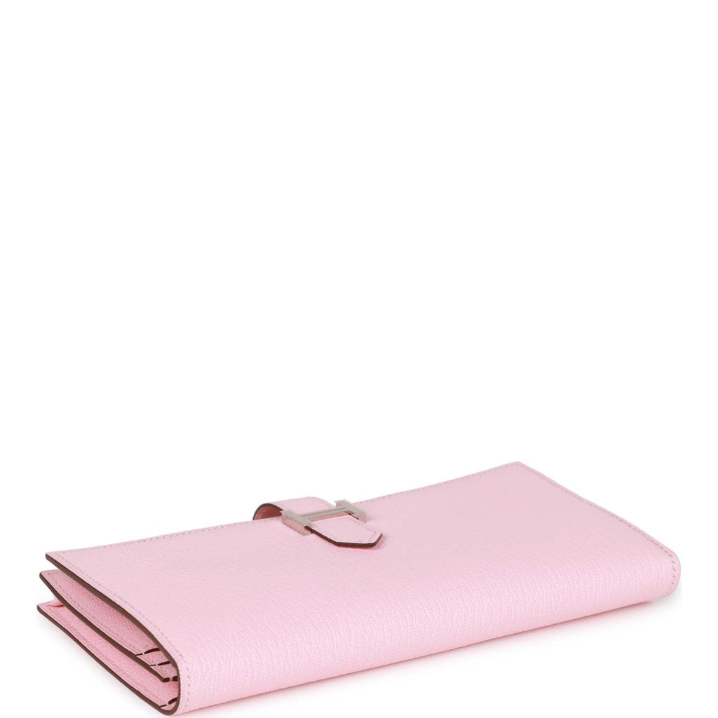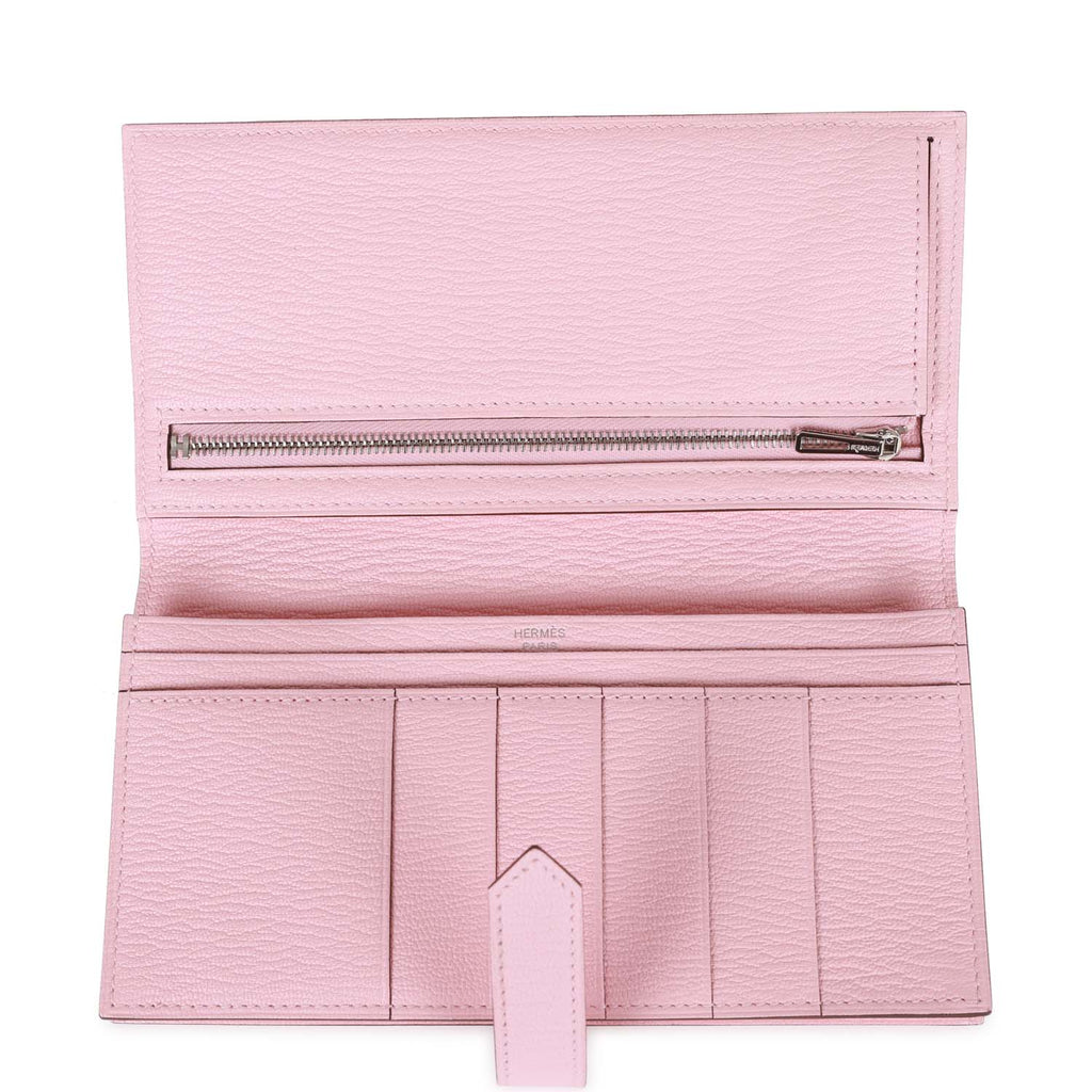 Hermes Bearn Gusset Wallet Rose Sakura Chevre Palladium Hardware