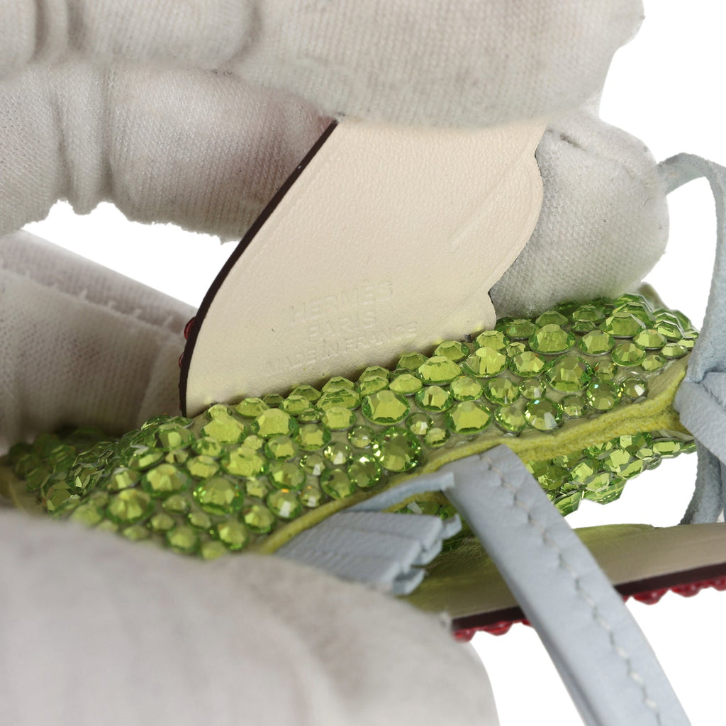 Custom Swarovski Crystal Hermes Pegasus Rodeo Bag Charm PM Jaune Bourgeone/Nata/Bleu Brume Milo Lambskin