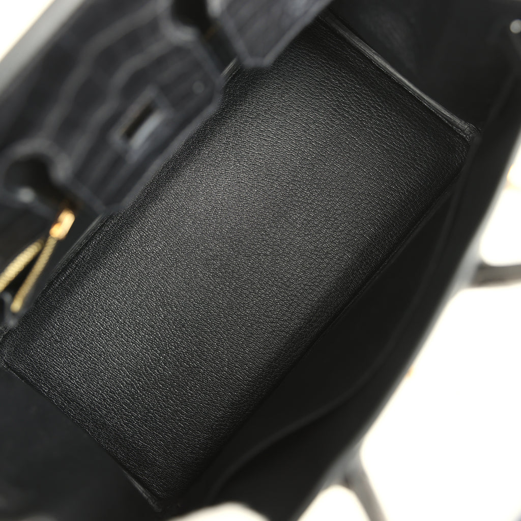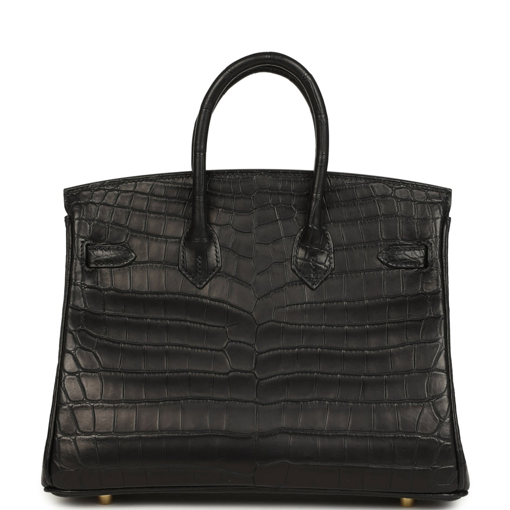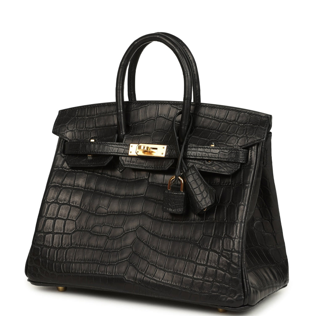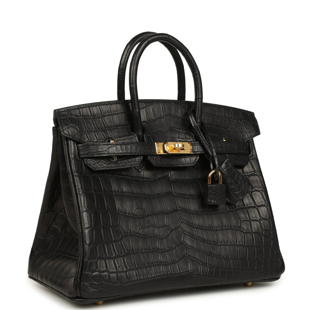 Hermes Birkin 25 Black Matte Niloticus Crocodile Gold Hardware