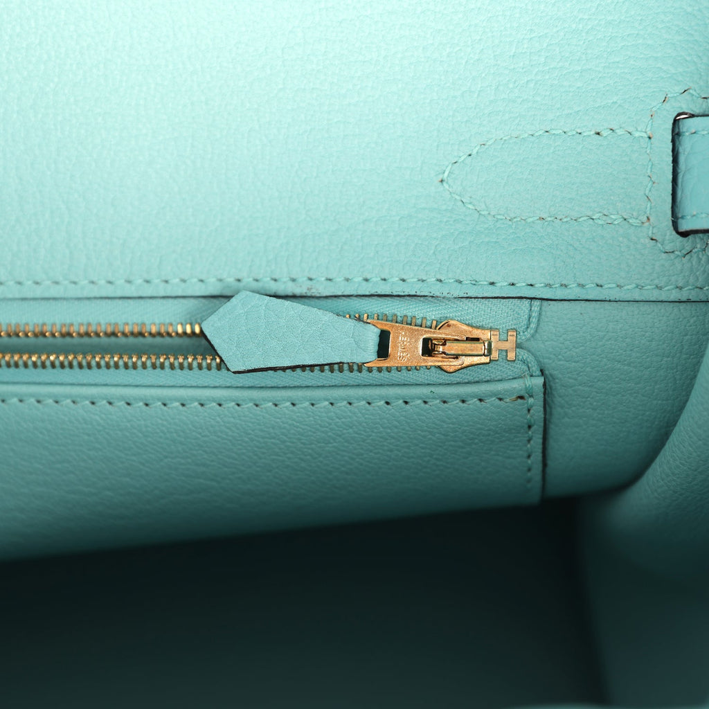 Hermes Birkin 30 Bleu Atoll Clemence Gold Hardware