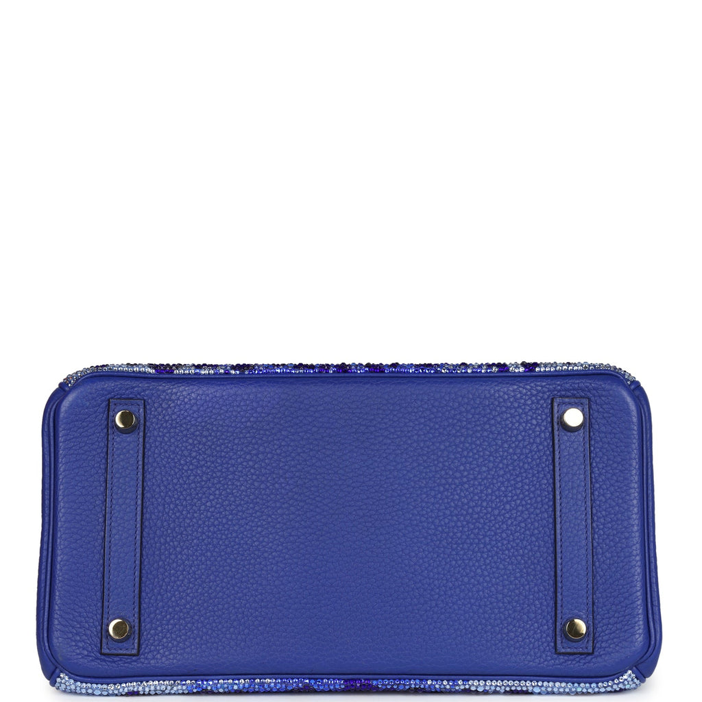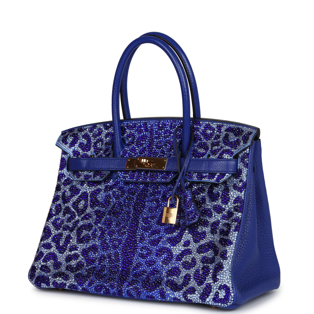 Custom Leopard Swarovski Crystal Hermes Birkin 30 Bleu Electric Togo Gold Hardware