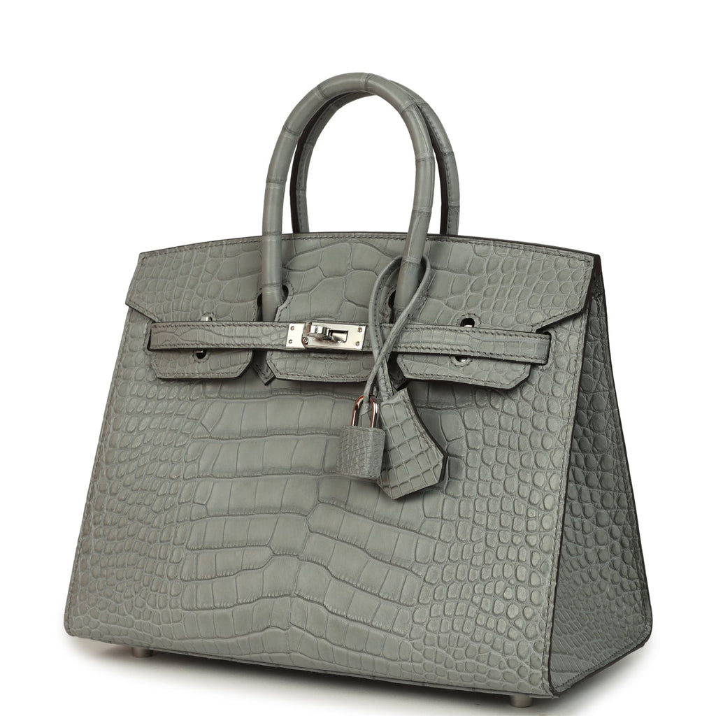 Hermes Birkin Sellier 25 Gris Ciment Matte Alligator Palladium Hardware