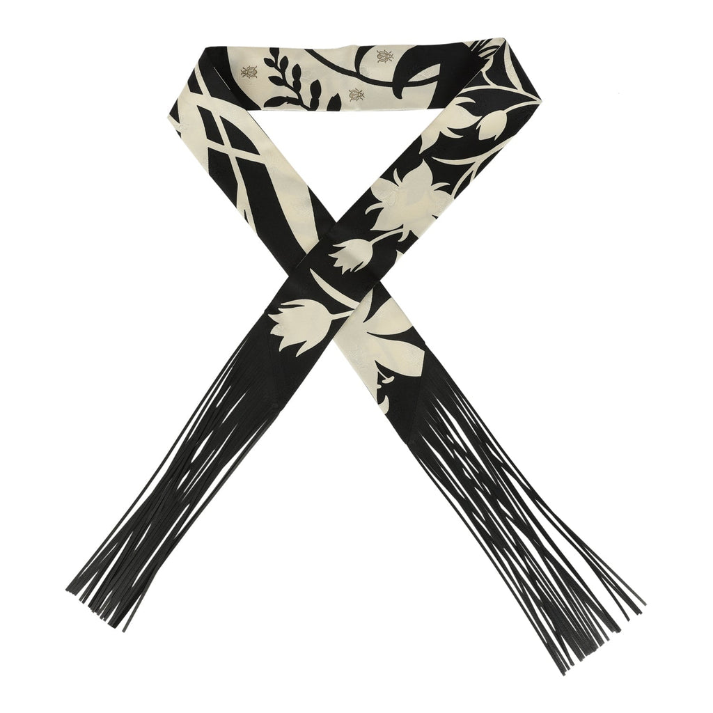 Hermes "Bouquet Final" Cream and Black Fringe Silk Twilly