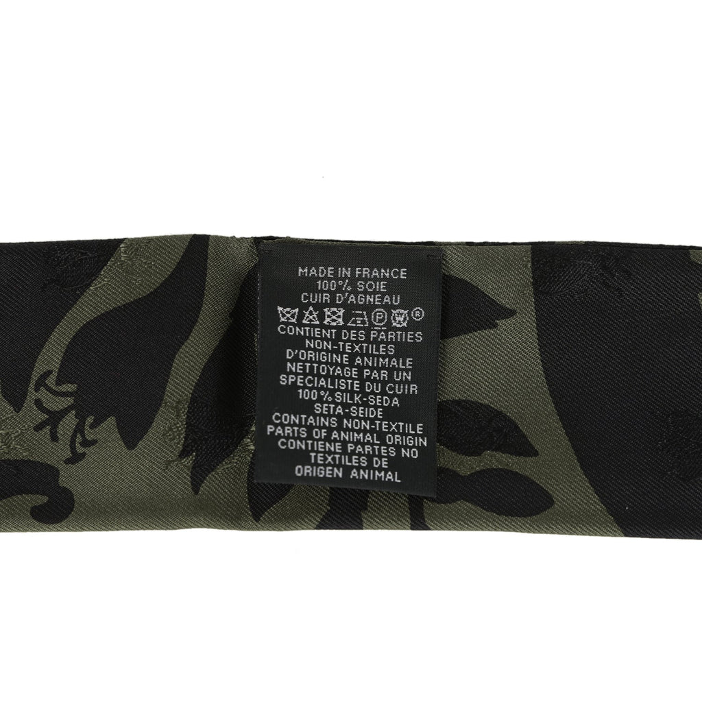 Hermes "Bouquet Final" Vert Loden and Black Fringe Silk Twilly