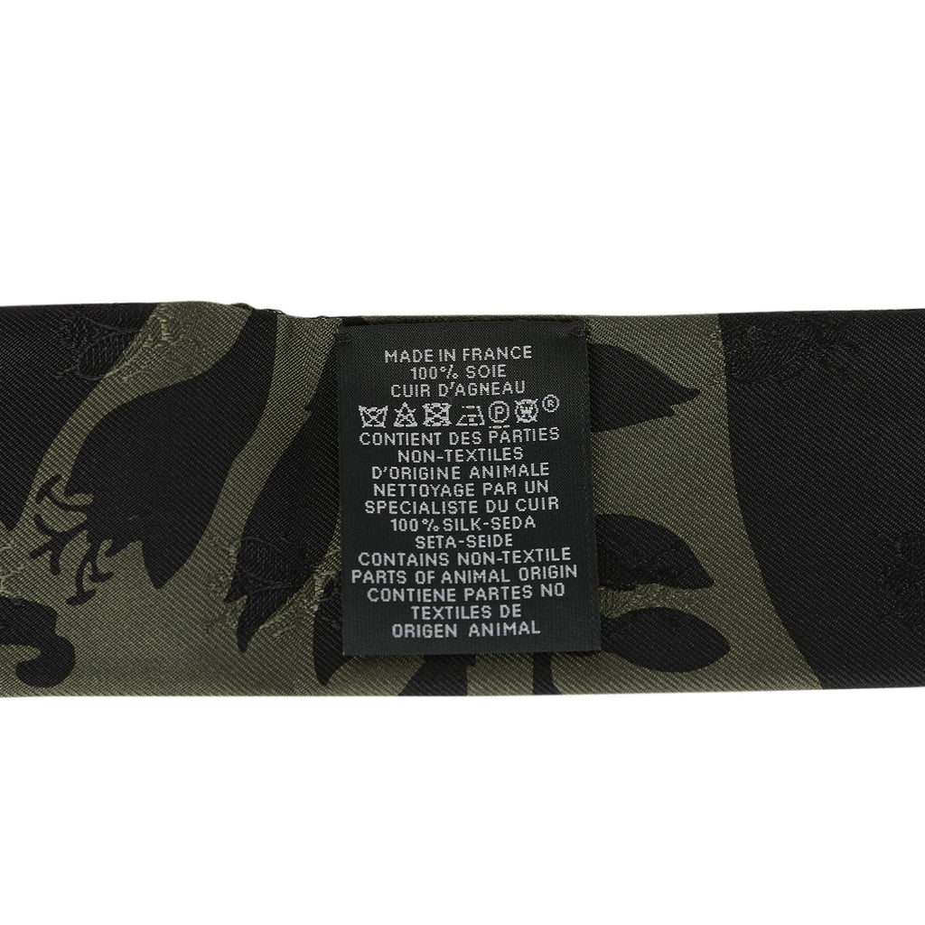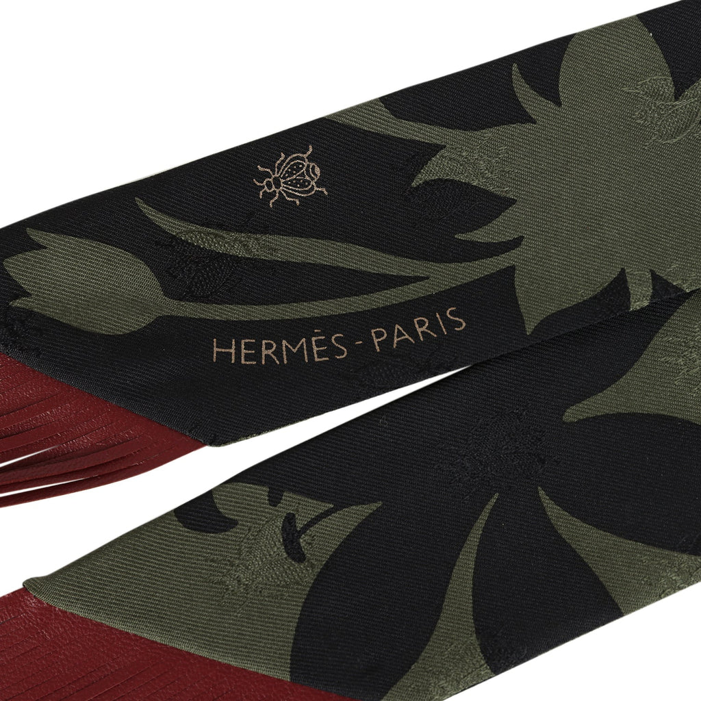 Hermes "Bouquet Final" Vert Loden and Black Fringe Silk Twilly