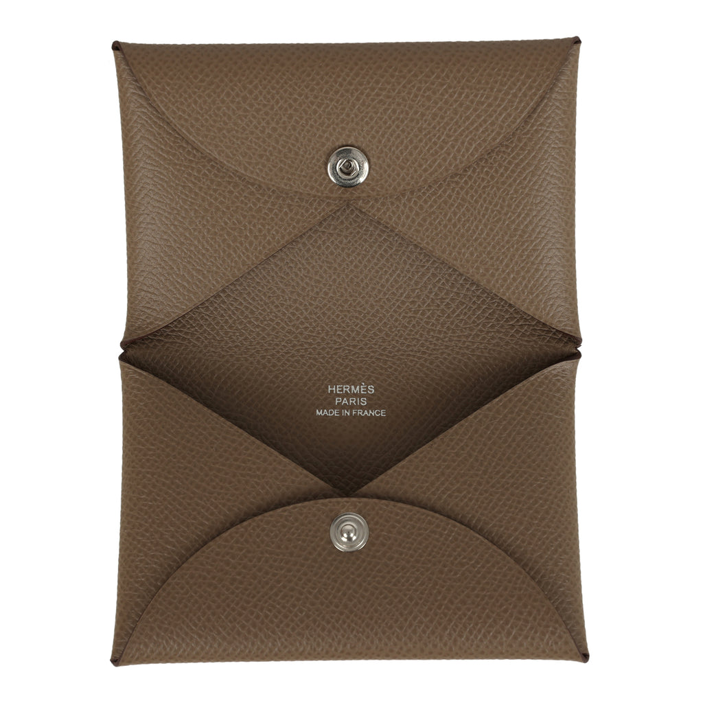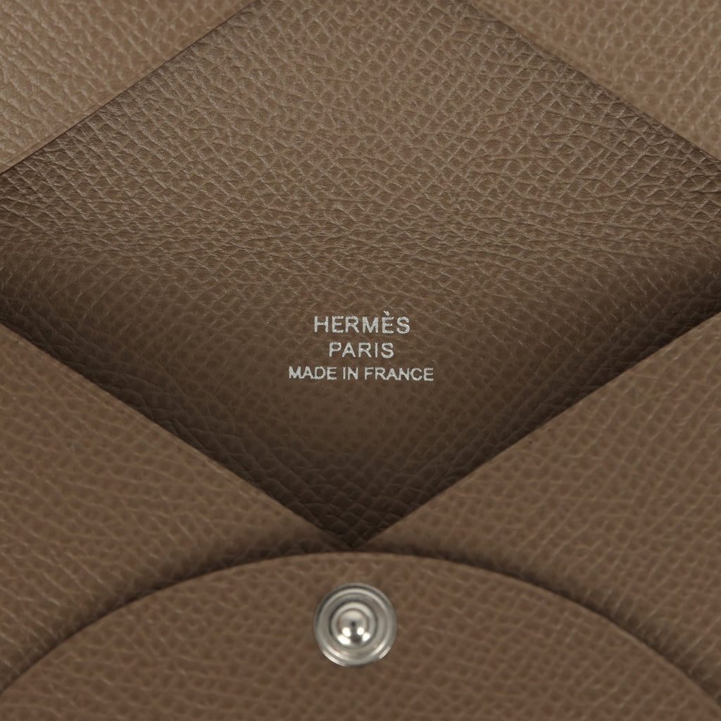 Hermes Calvi Card Holder Etoupe Epsom Palladium Hardware