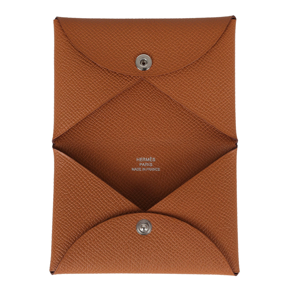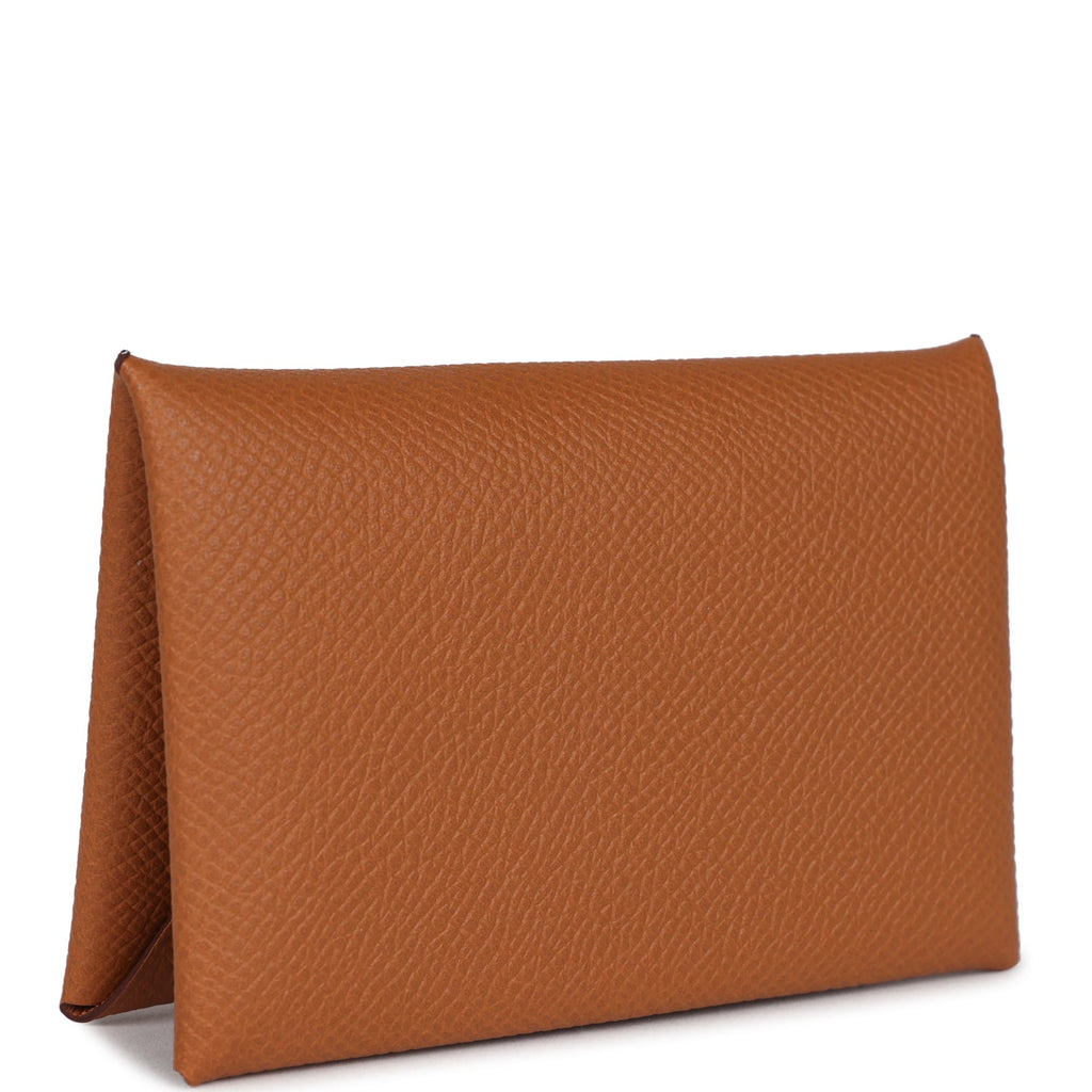 Hermes Calvi Card Holder Gold Epsom Palladium Hardware