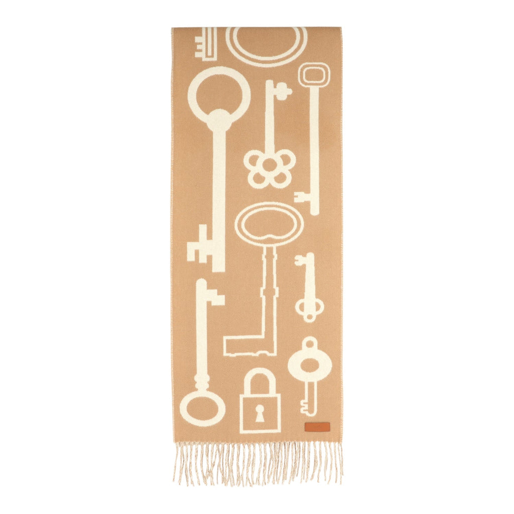 Hermes Casaque "Echarpe Porte-Clefs" Camel, White and Beige Muffler Cashmere Scarf
