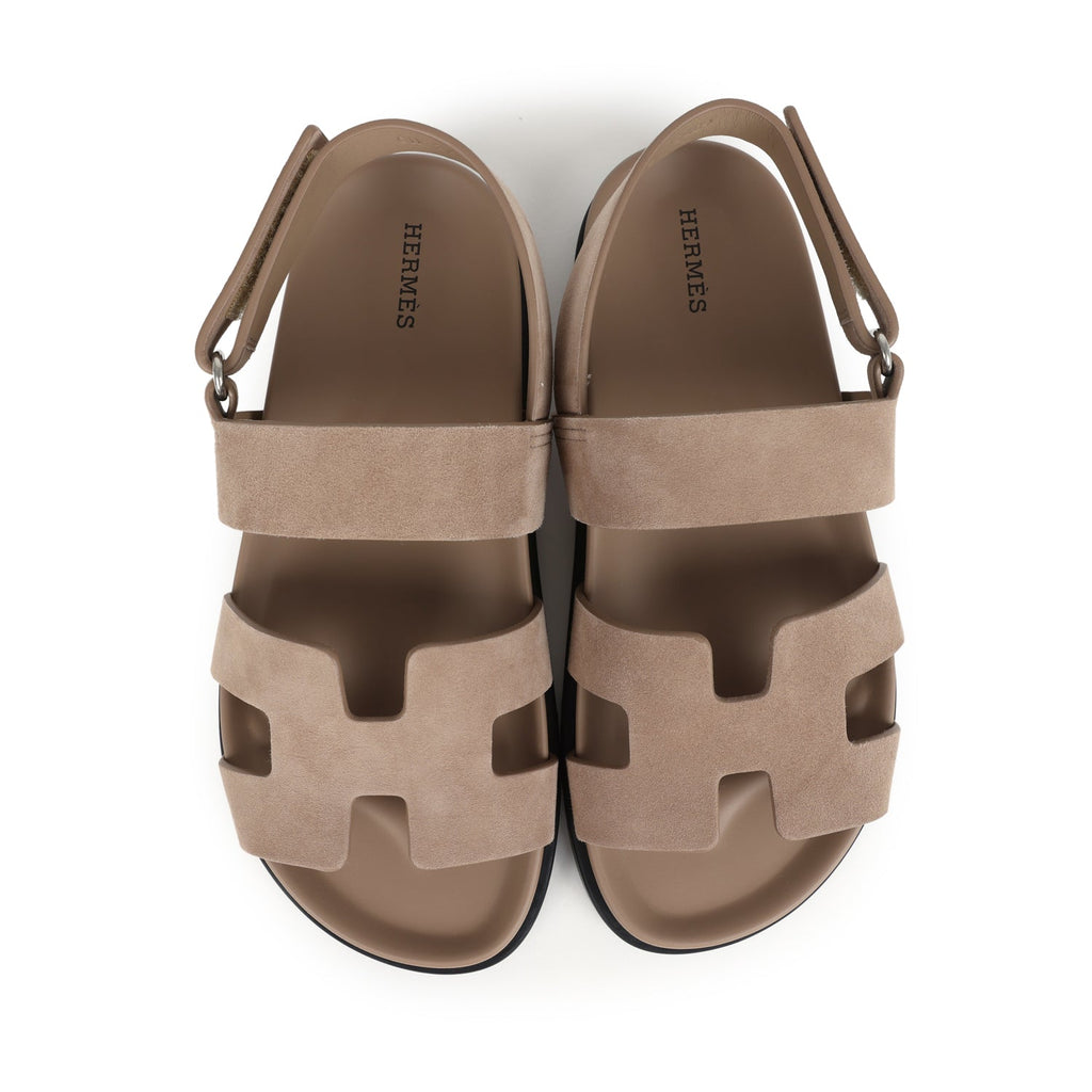 Hermes Chypre Genius Sandals Beige Lin Suede Palladium Hardware 38 EU