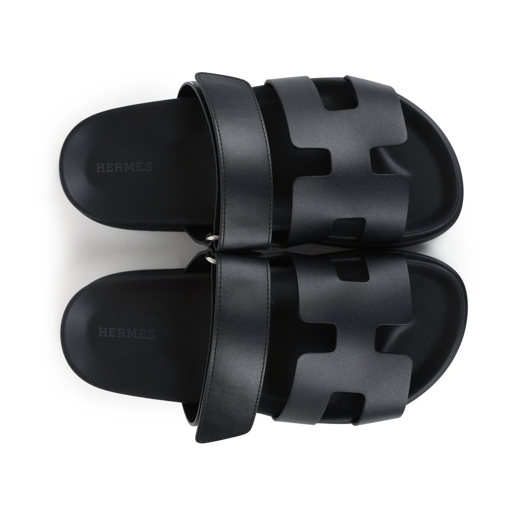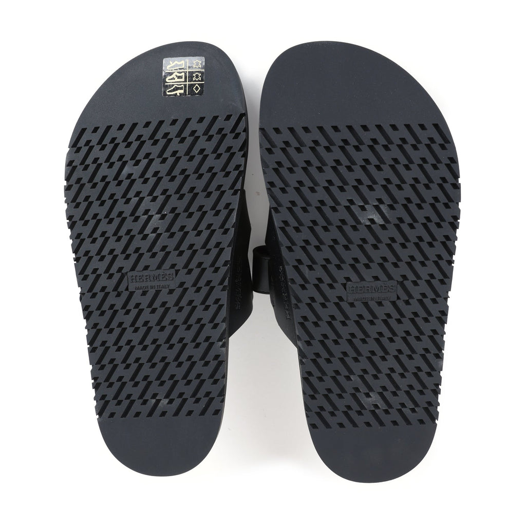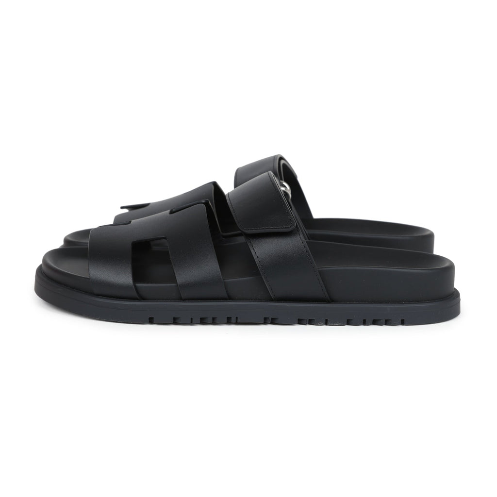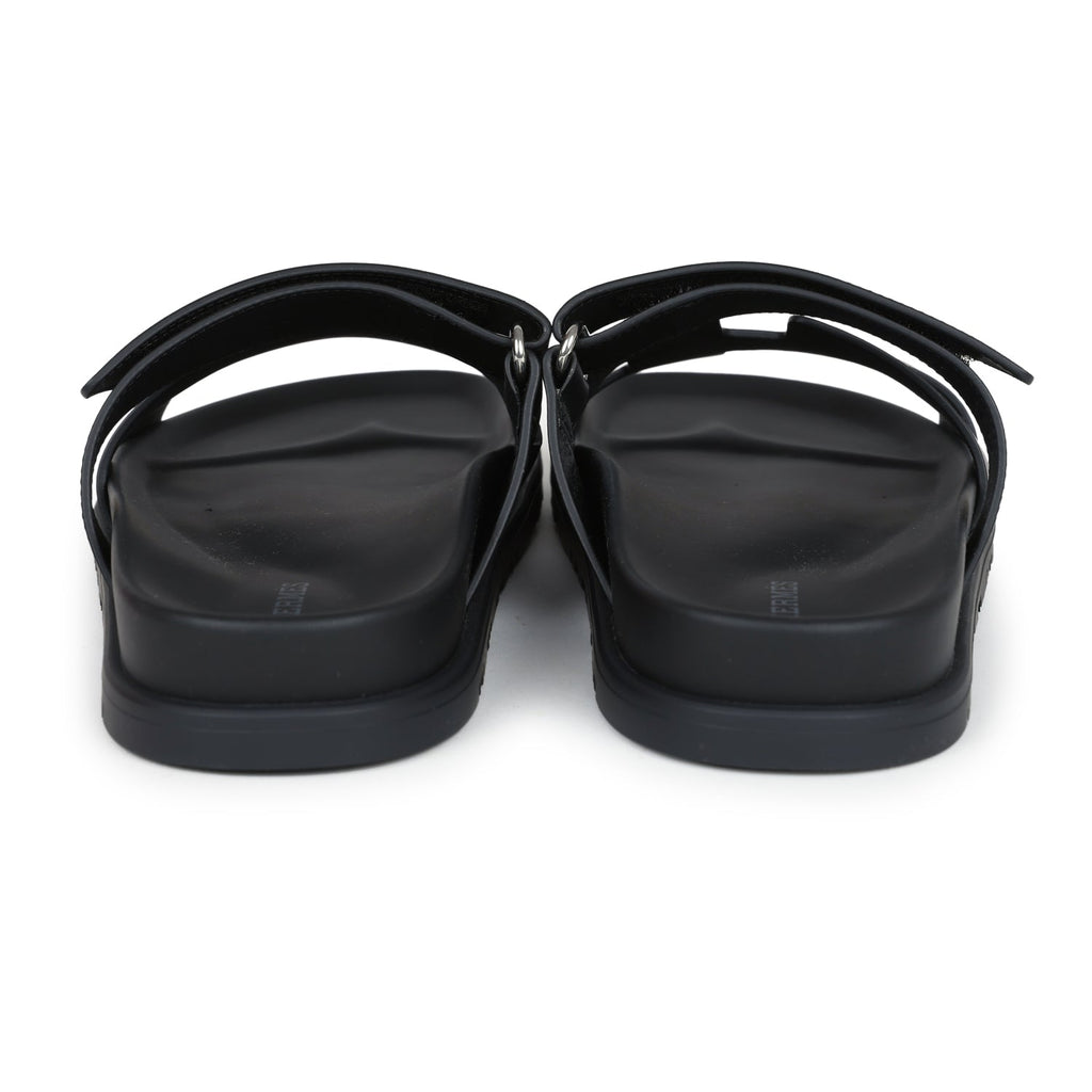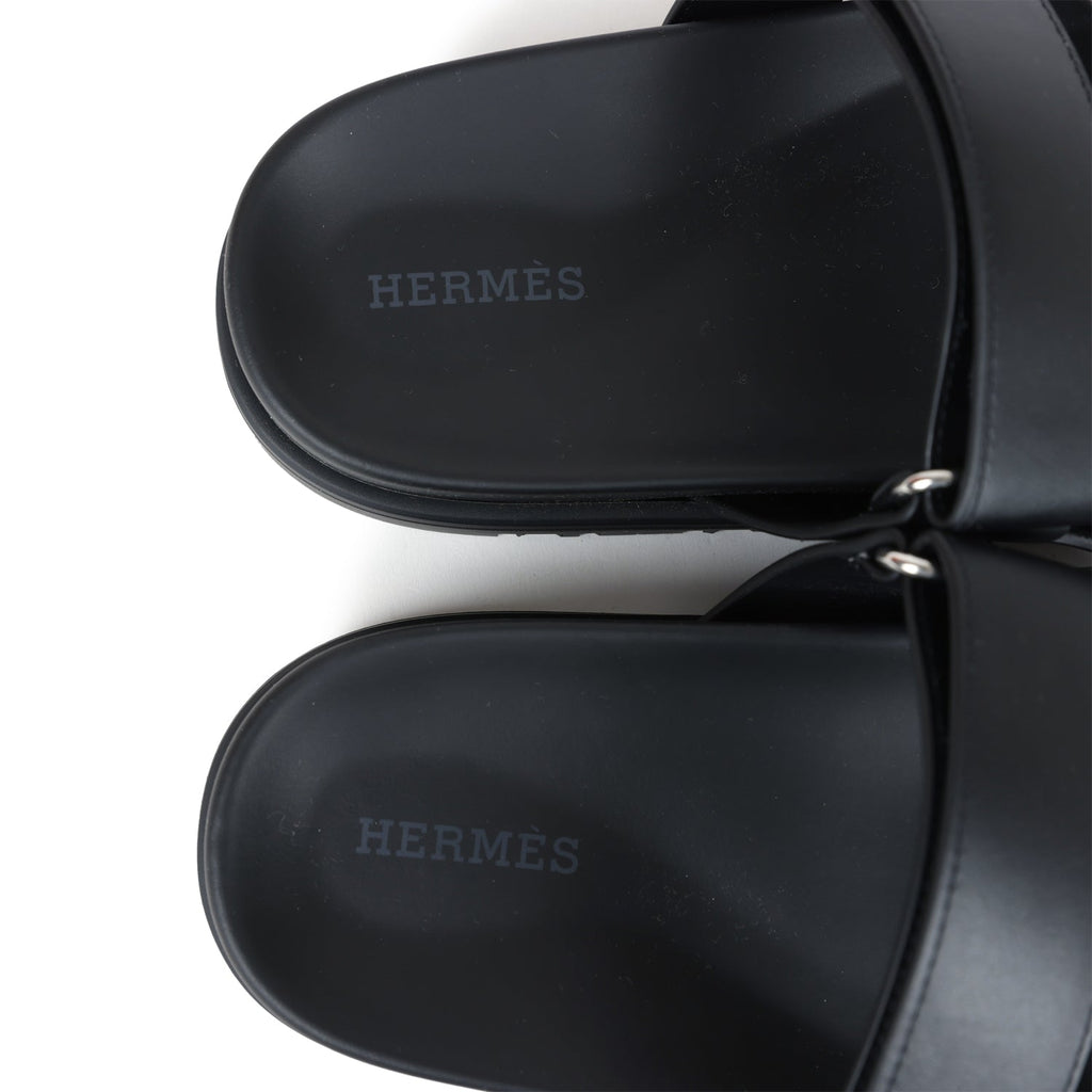 Hermes Chypre Techno Sandals Black Calfskin Palladium Hardware 36.5 EU