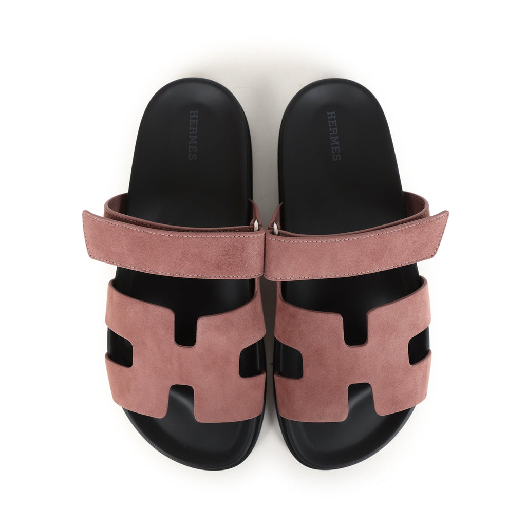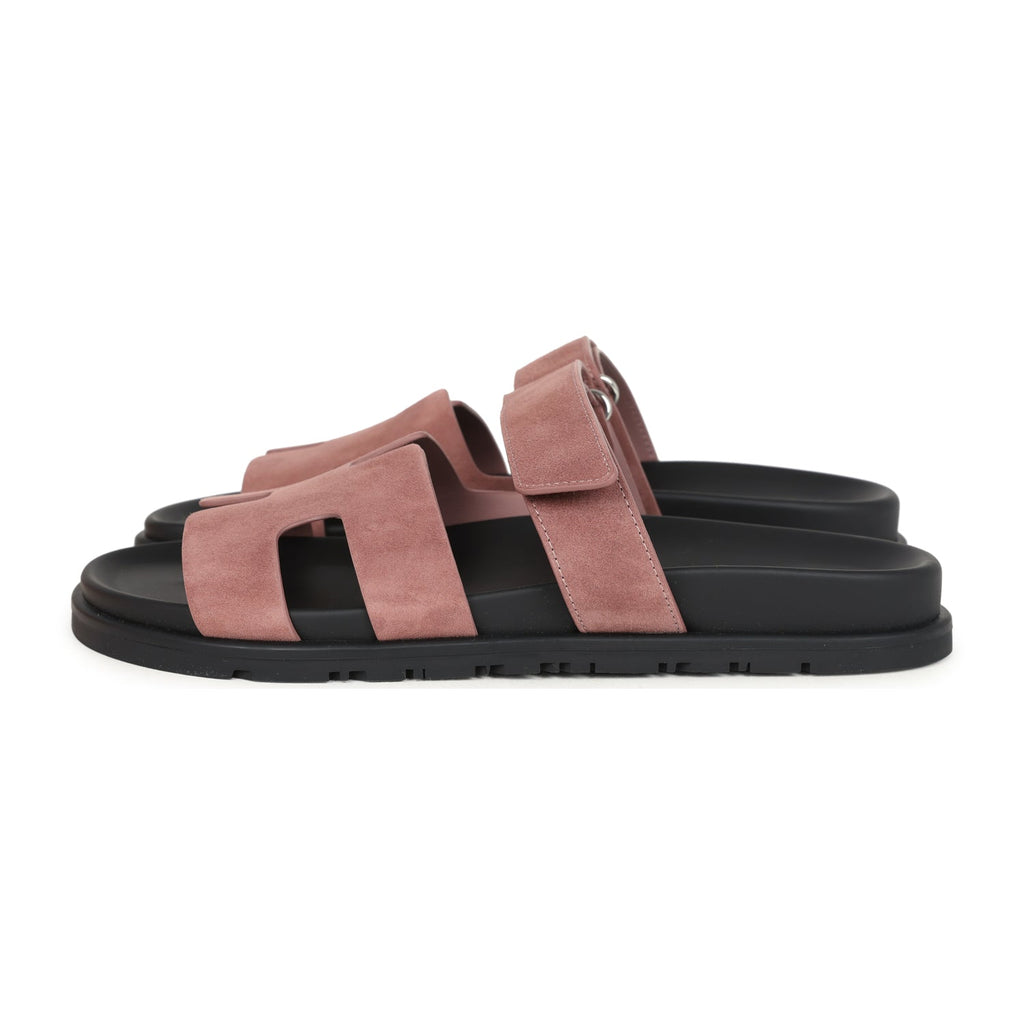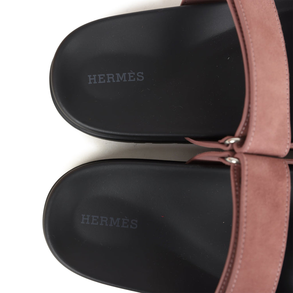 Hermes Chypre Techno Sandal Rose Antique Suede Palladium Hardware 40 EU