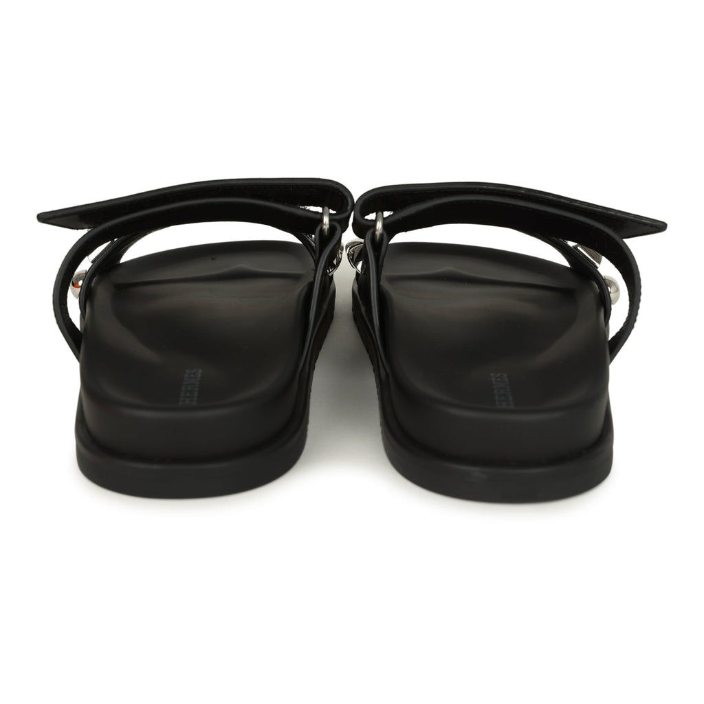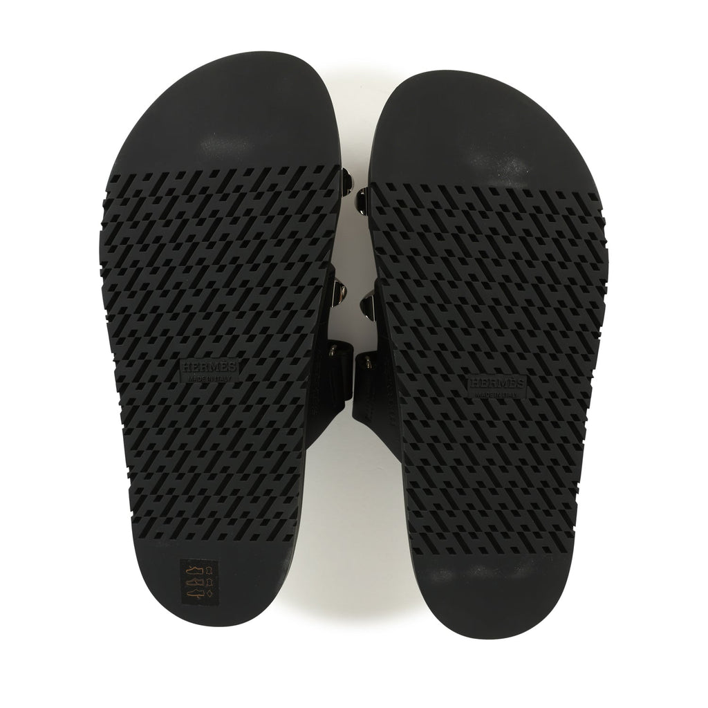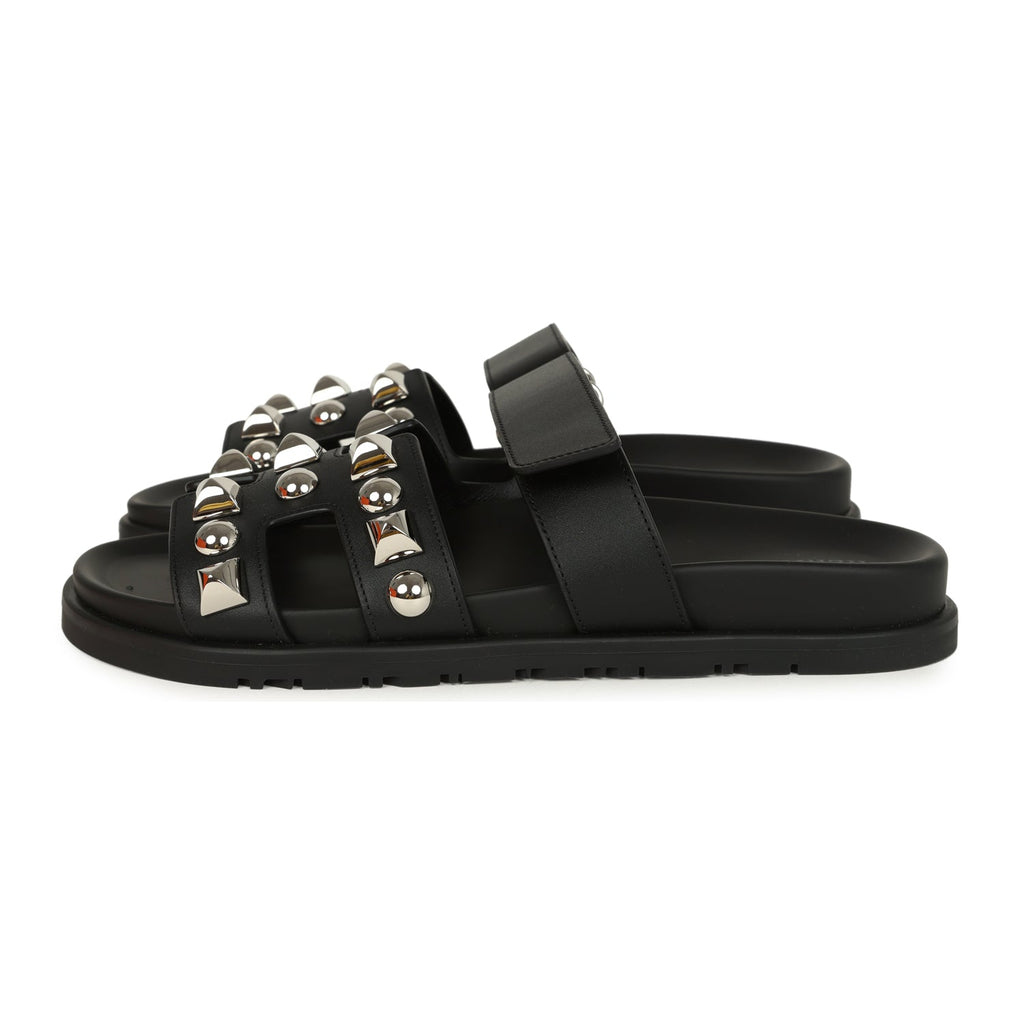 Hermes Chypre Techno Sandals Black Studded Calfskin Palladium Hardware 38 EU