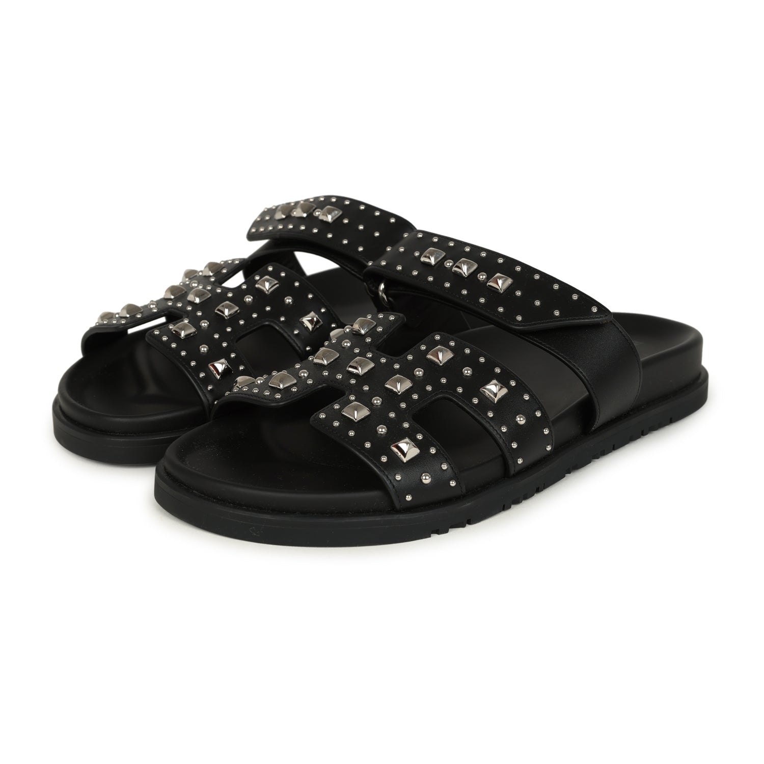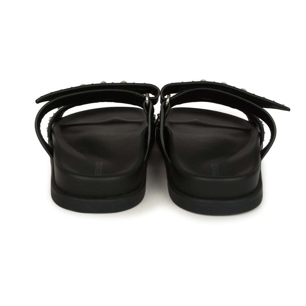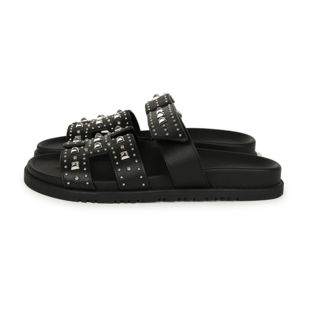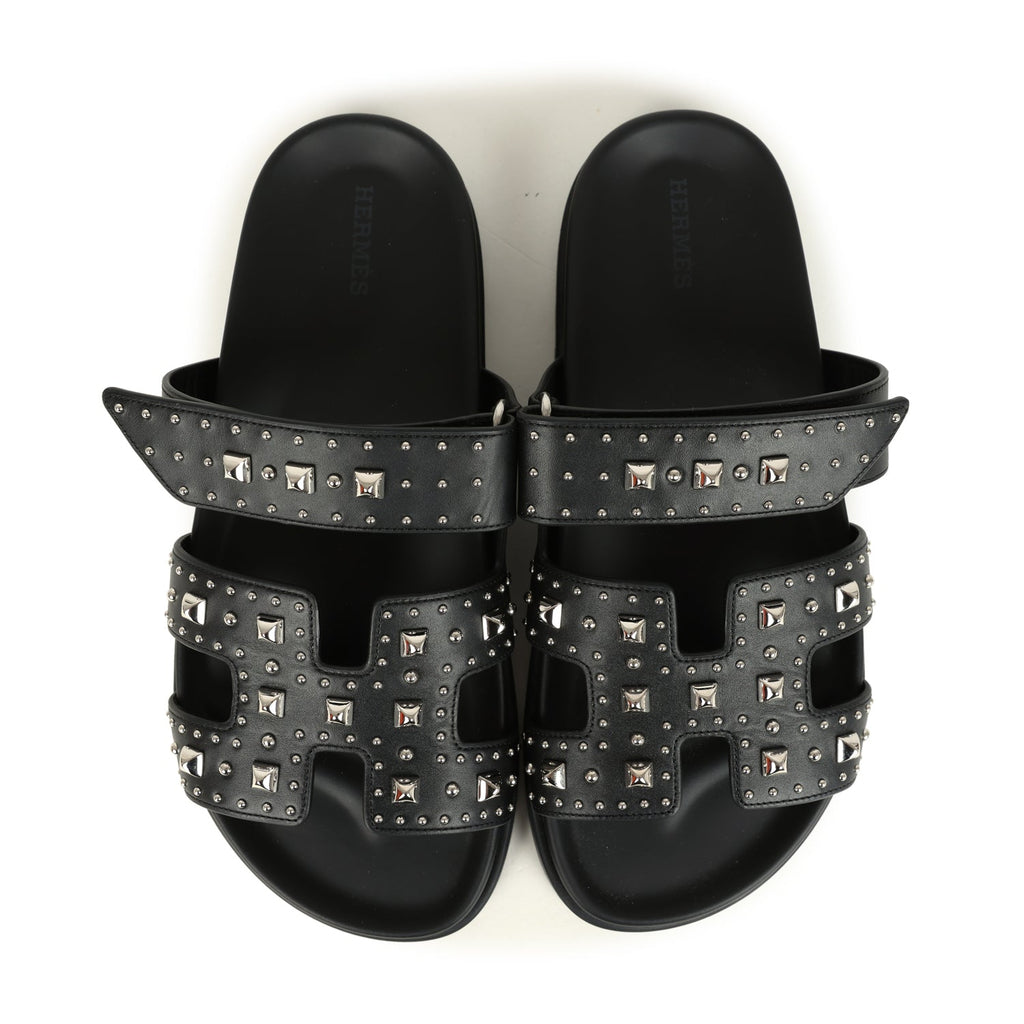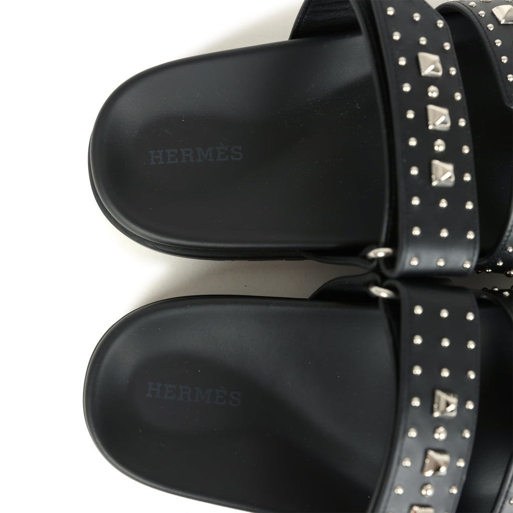 Hermes Chypre Techno Sandals Black Studded Calfskin Palladium Hardware 38 EU