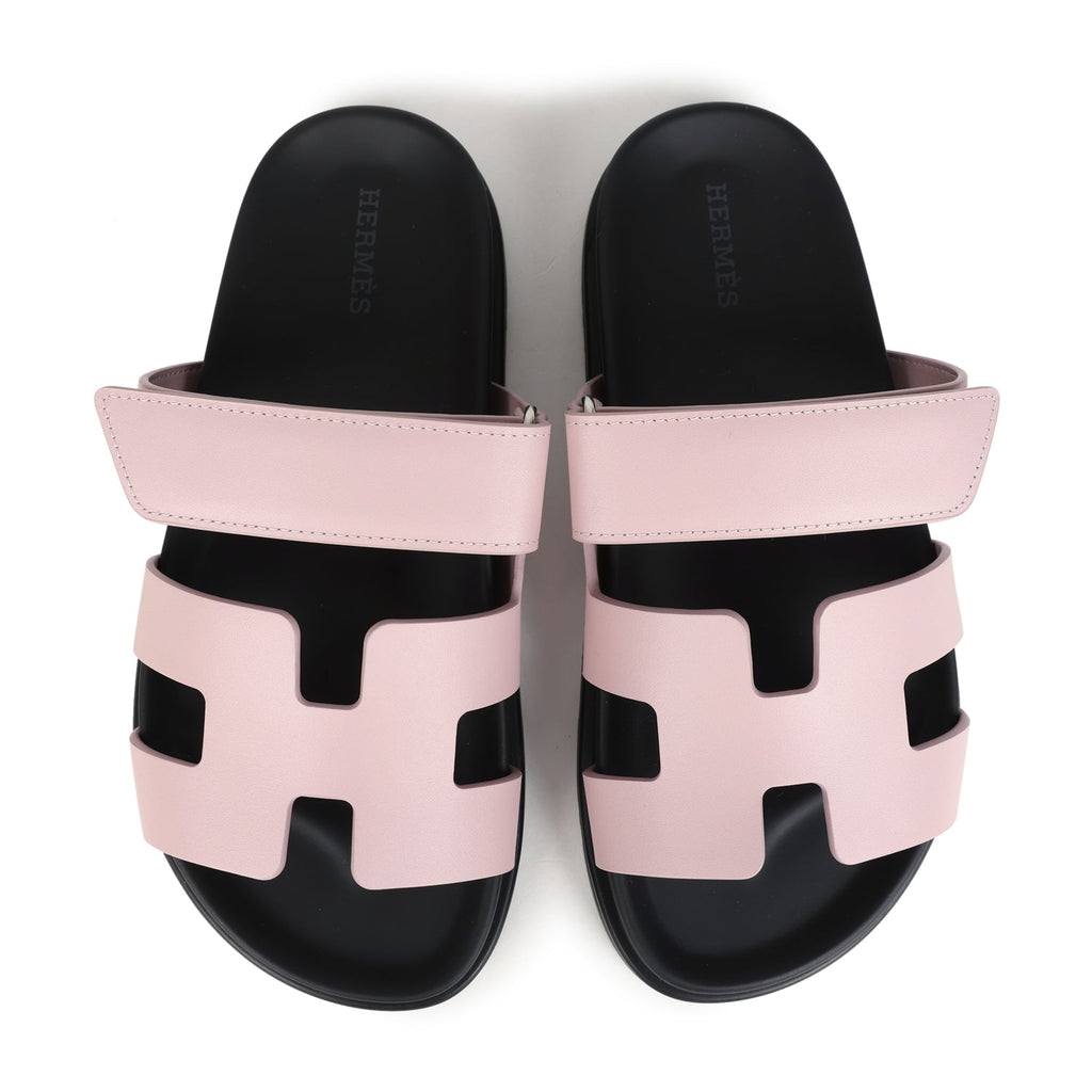 Hermes Chypre Techno Sandals Rose Cancan Calfskin Palladium Hardware 35 EU