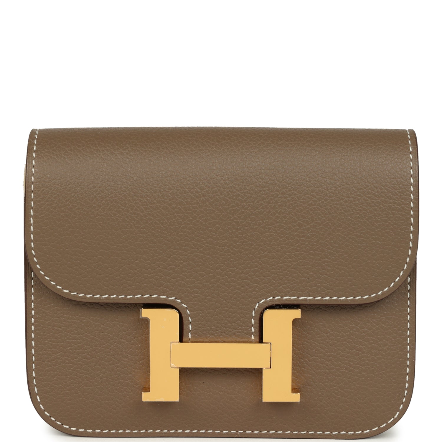 Hermes Constance Slim Compact Wallet Etoupe Evercolor Gold Hardware